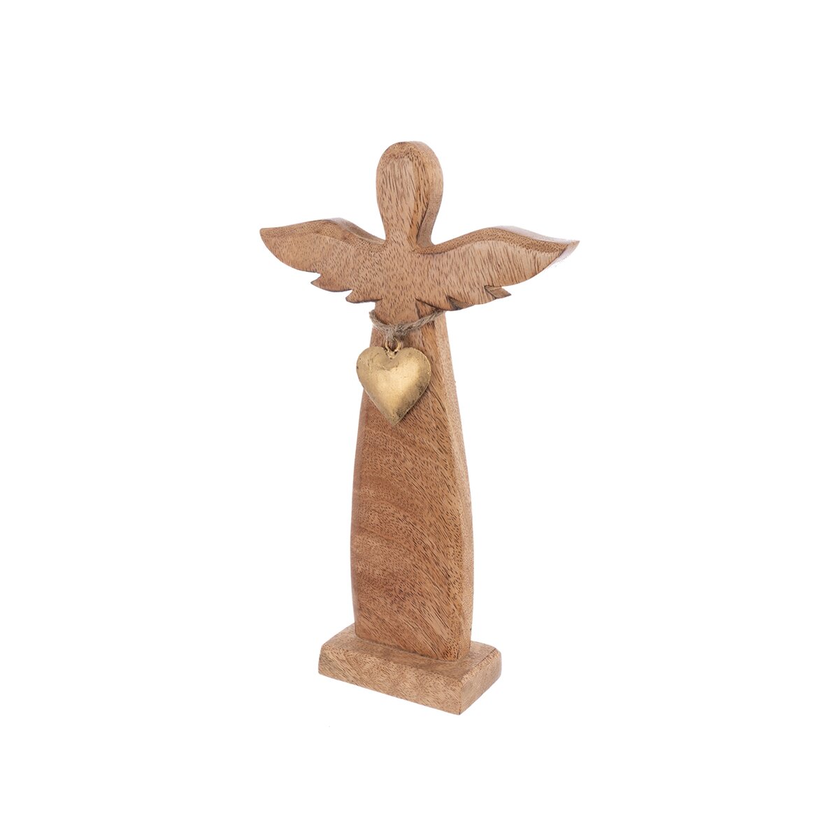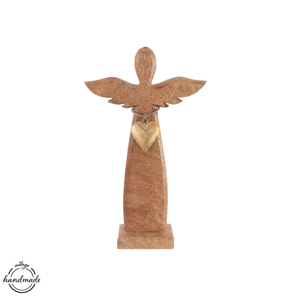 Kód produktu 351884Dekorácia ANJEL s kovovým srdcom ozdobí vašu domácnosť nielen v období Vianoc, využiť ju môžete po celý rok. Vhodná tiež ako darček. Materiál: dekoratívne mangové drevo, kov, jutový povrázok. Rozmery: š. 16 cm, v. 26 cm.