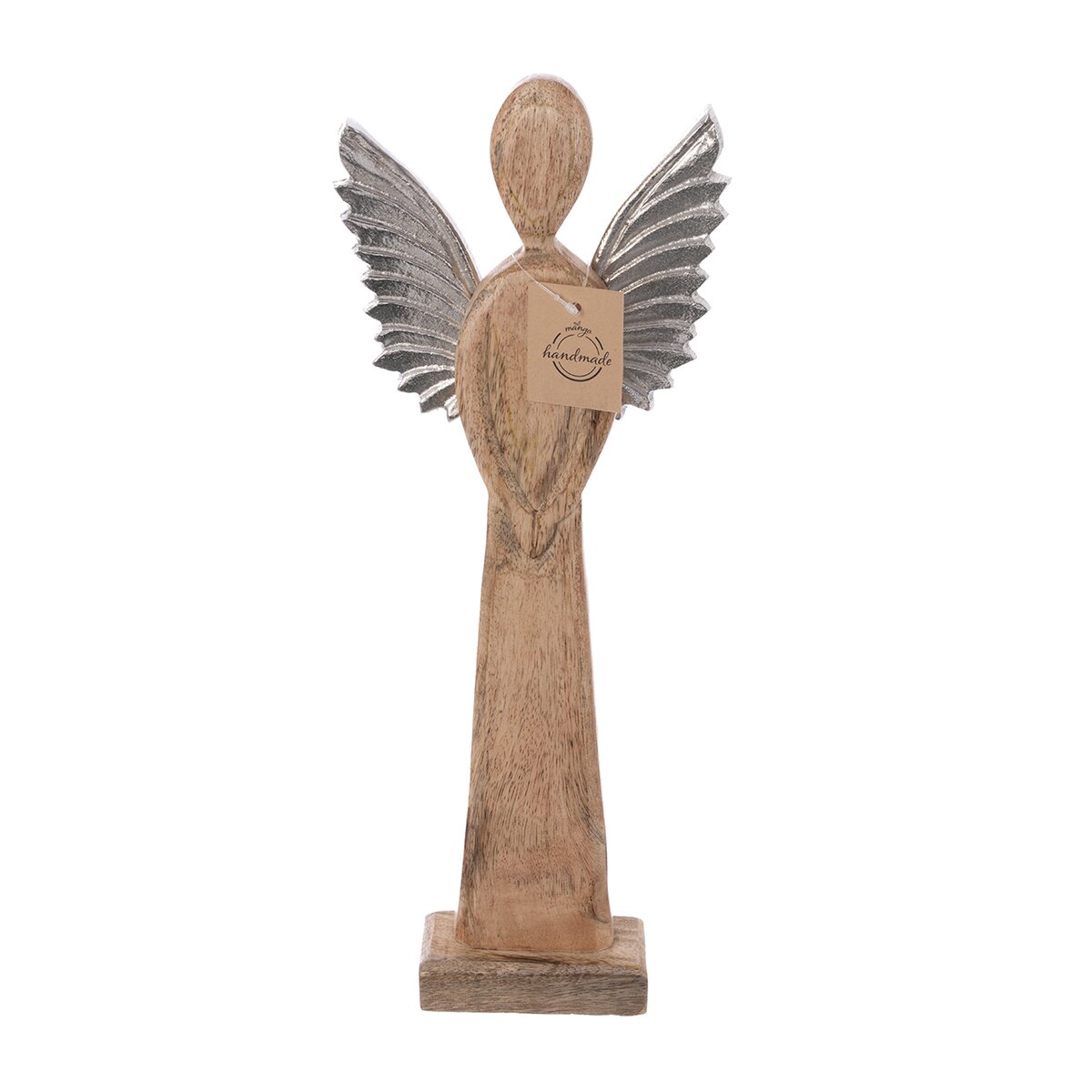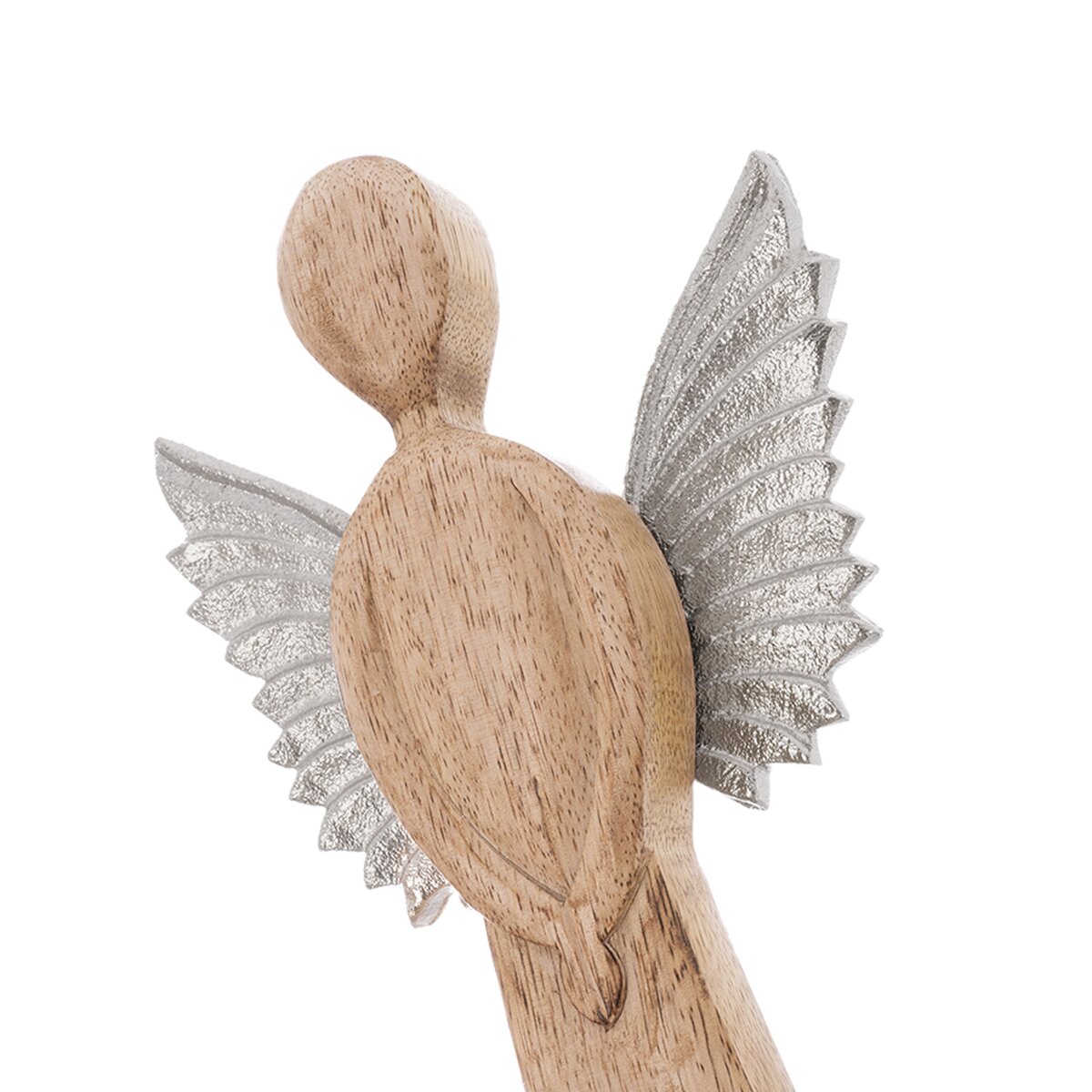 Kód produktu 351898Dekorácia ANJEL s kovovými krídlami ozdobí vašu domácnosť nielen v období Vianoc, využiť ju môžete po celý rok. Má krásnu textúru mangového dreva. Vhodná tiež ako darček. Materiál: dekoratívne mangové drevo, kov. Rozmery: š. 17 cm, v. 42,5 cm.