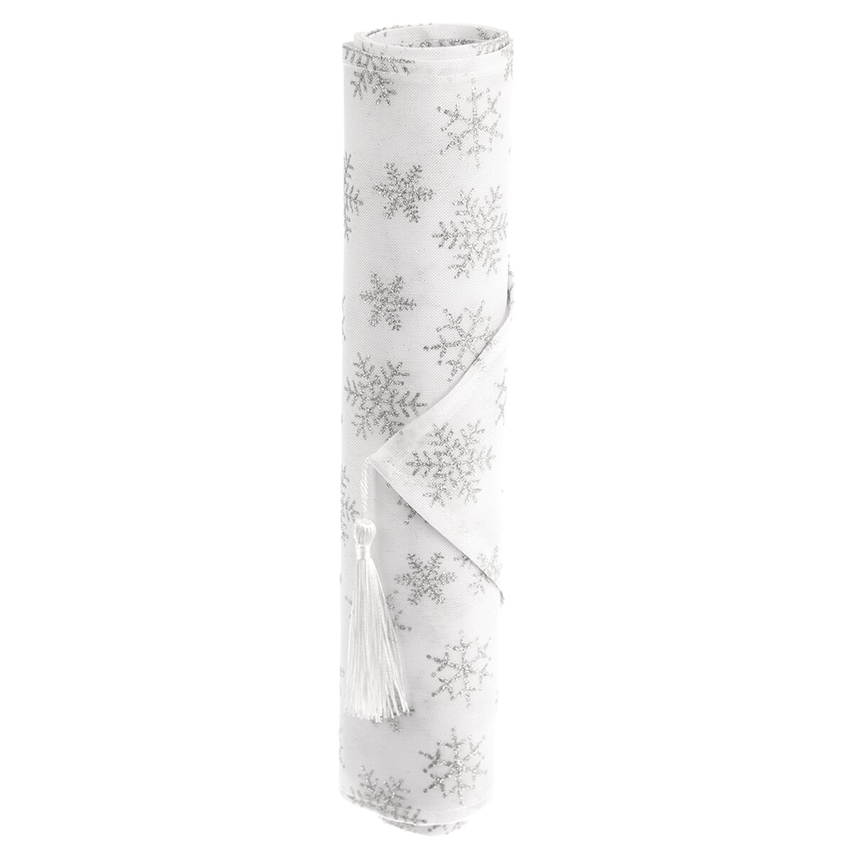 Viac informáciíSlávnostnú náladu vytvorí okrem krásneho jedálenského servisu, pohárov a kvalitných príborov aj zaujímavý biely behúň so striebornými vločkami. Možno ho položiť na jednofarebný obrus alebo priamo na holú dosku stola, vykúzlite si tak okamžite slávnostnú sviatočnú atmosféru.