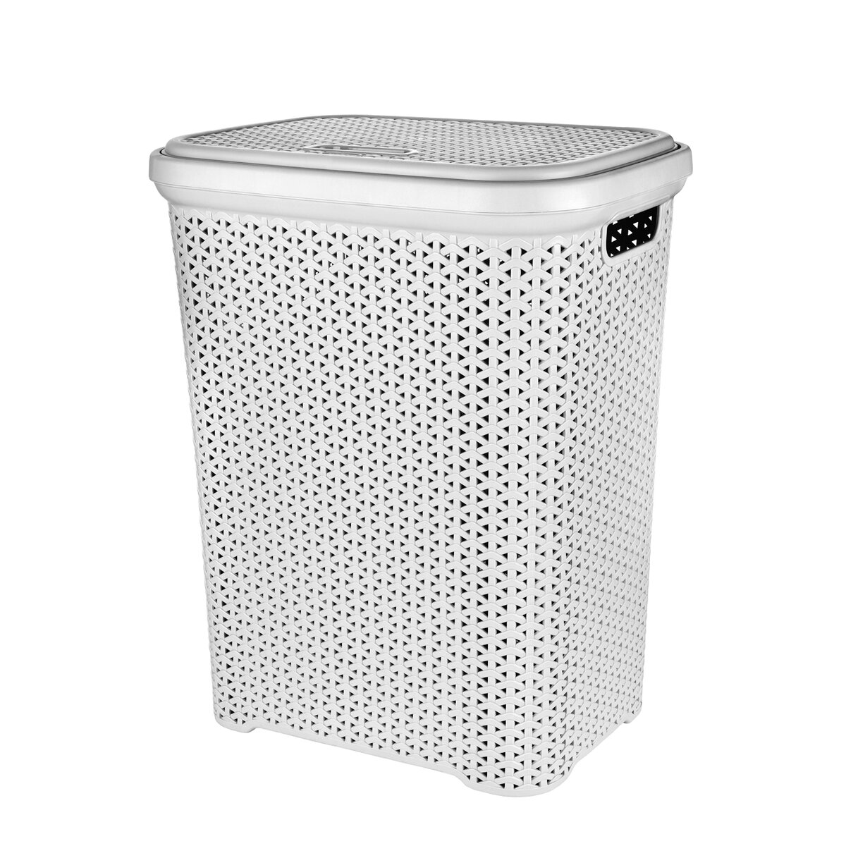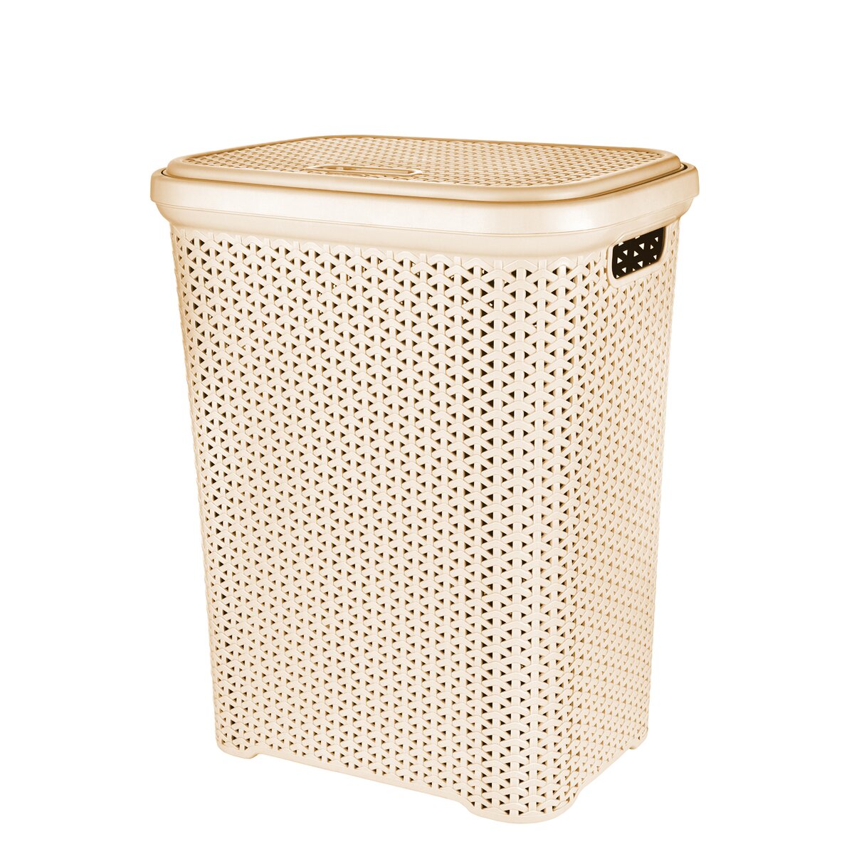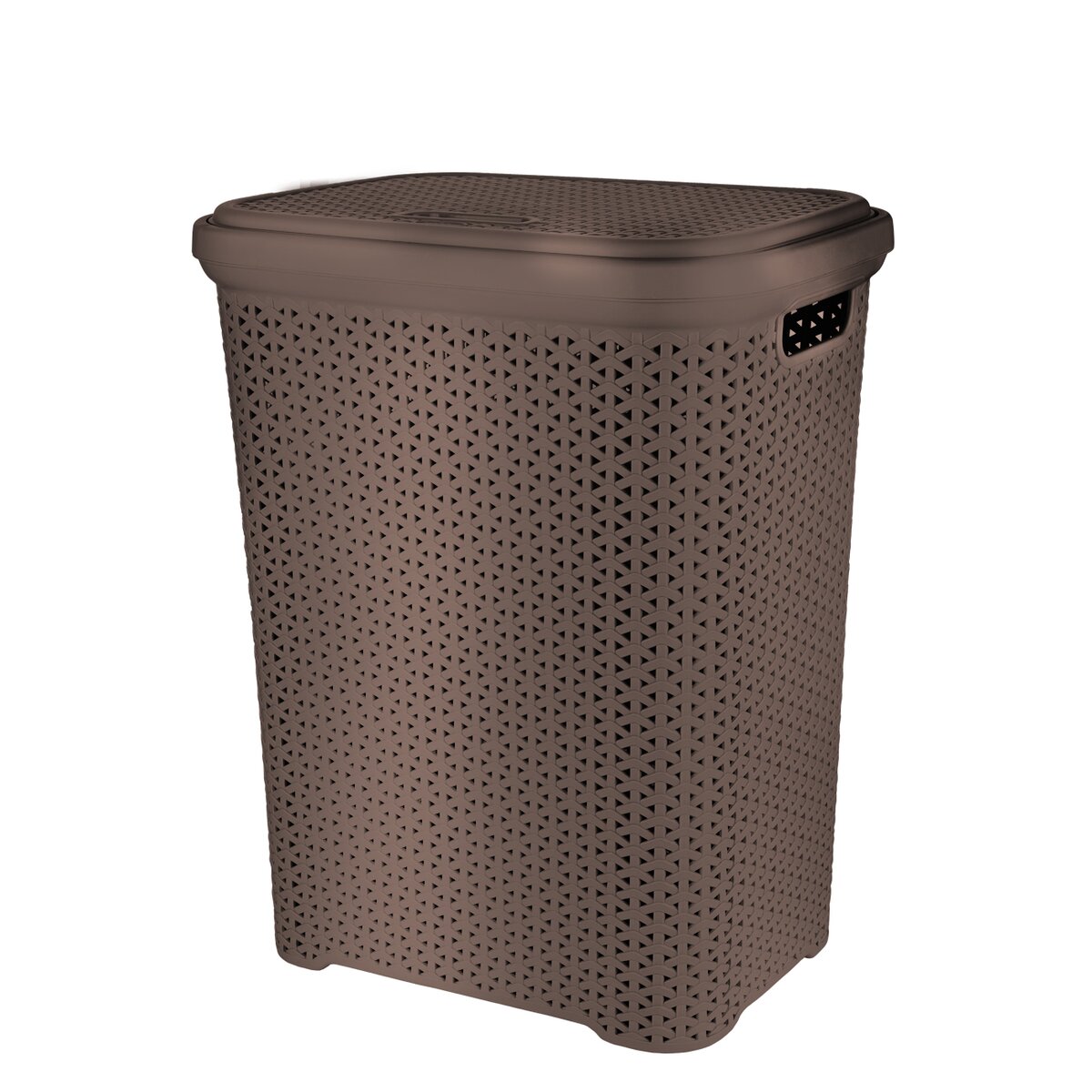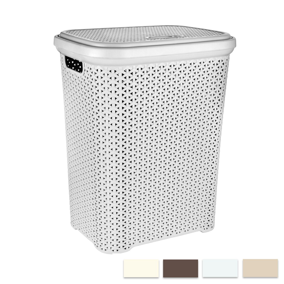 Kôš na bielizeň s odklápacím vekom. Materiál: plast. Dekór ratan. Rozmery: 44x33x56 cm.