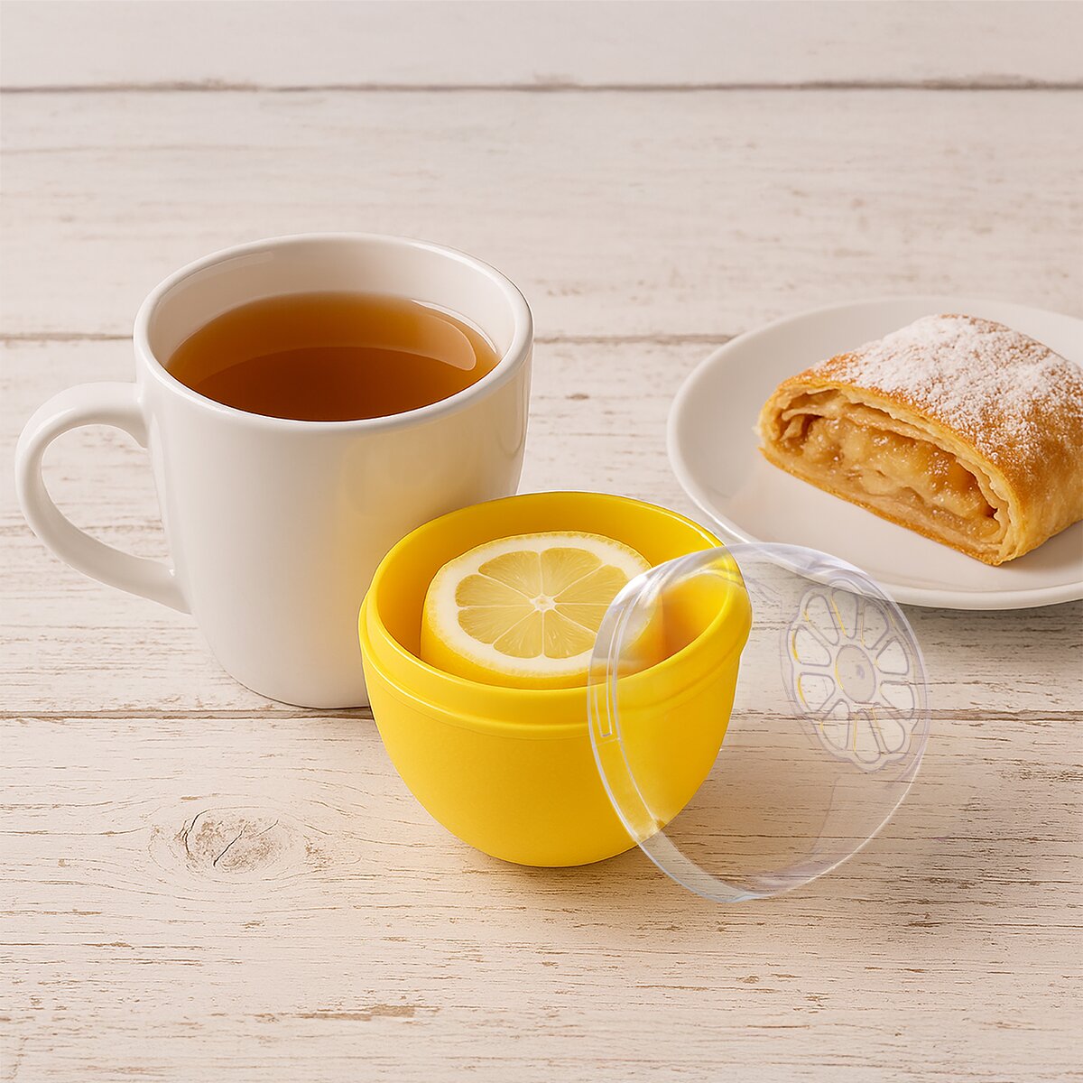 Kód produktu 154078Box na citrón z kolekcie LIMEPOP je praktický pomocník do každej kuchyne, ktorý uchováva čerstvosť a vzhľad rozkrojeného citróna. Chráni citrón pred muškami a iným hmyzom a zároveň zabraňuje tomu, aby sa jeho vôňa šírila celou chladničkou. Vďaka tomuto boxu zostane citrón dlhšie čerstvý a pripravený na ďalšie použitie. Nie je vhodný do mikrovlnnej rúry, umývačky riadu a mrazničky. Materiál: plast PP (žltá časť), plast PS (transparentný). Rozmery: pr. 8 cm, v. 9,5 cm.