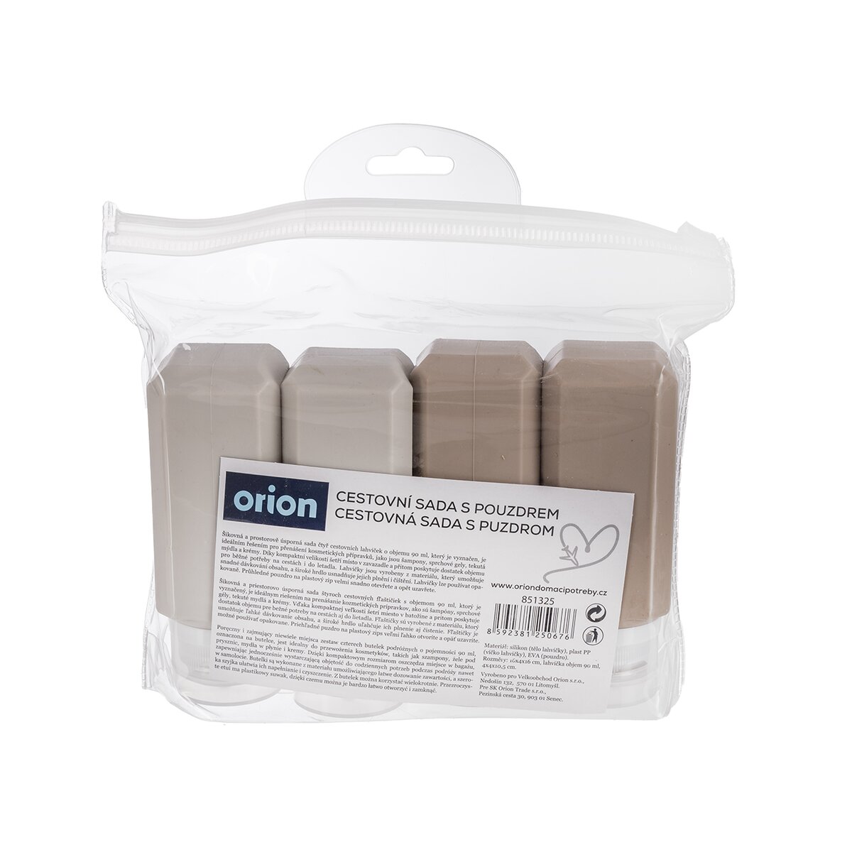 Kód produktu 851325Praktická sada 4 kusov silikónových fľaštičiek s plastovým odklápacím viečkom je určená na uloženie umývacích gélov, šampónov, krémov, tekutého mydla a pod., určených na cestovanie. Majú objem 90 ml a sú uložené v uzatvárateľnom priehľadnom puzdre.