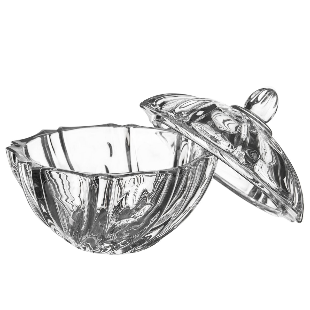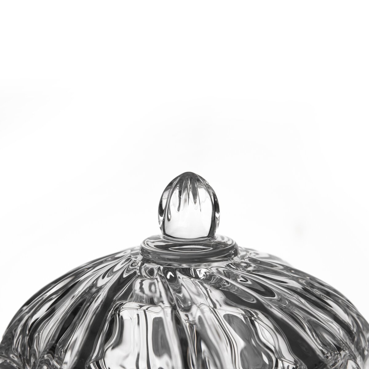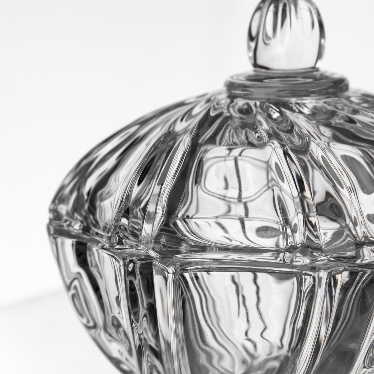 Kód produktu 153668Cukornička s vekom s plastickým vzorom. Materiál: sklo. Rozmery: pr. 12 cm, v. 5,5/10,5 cm.