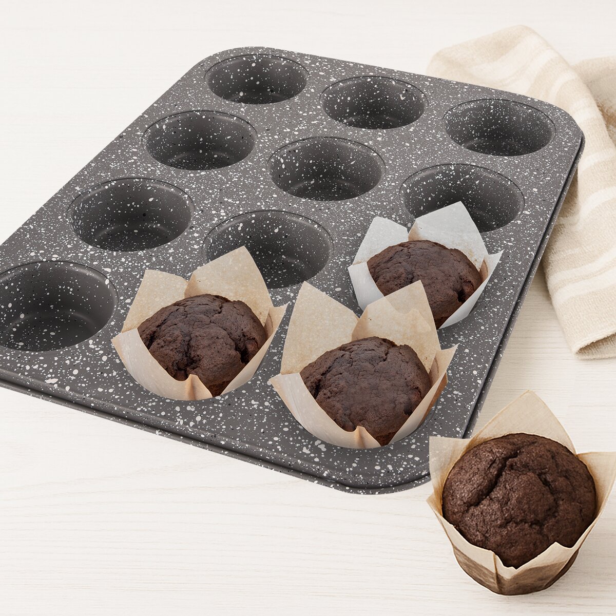 Kód produktu 120076Cukrárske košíčky sú ideálne na pečenie muffinov, cupcakov, suflé alebo drobného pečiva. Sú vhodné do rúry aj na štýlové servírovanie sladkostí. V balení nájdete mix troch farieb. Vytvorenú dobrotu je možné z košíčka ľahko vybrať. Na dosiahnutie dokonalého tvaru muffinu odporúčame vložiť košíček do našej formy na pečenie. Výška košíčka určená na plnenie cestom je 5 cm. Celková výška vrátane okrajov je 8 cm a pomáha udržať tvar cesta pri pečení. Sú vhodné až do 230 °C počas max. 30 min, pre dlhšie pečenie odporúčame používať pri 180 °C. Materiál: papier na pečenie. Rozmery: v. 8 cm, pr. 7 cm, pr. dna 5 cm. Sada 50 ks.