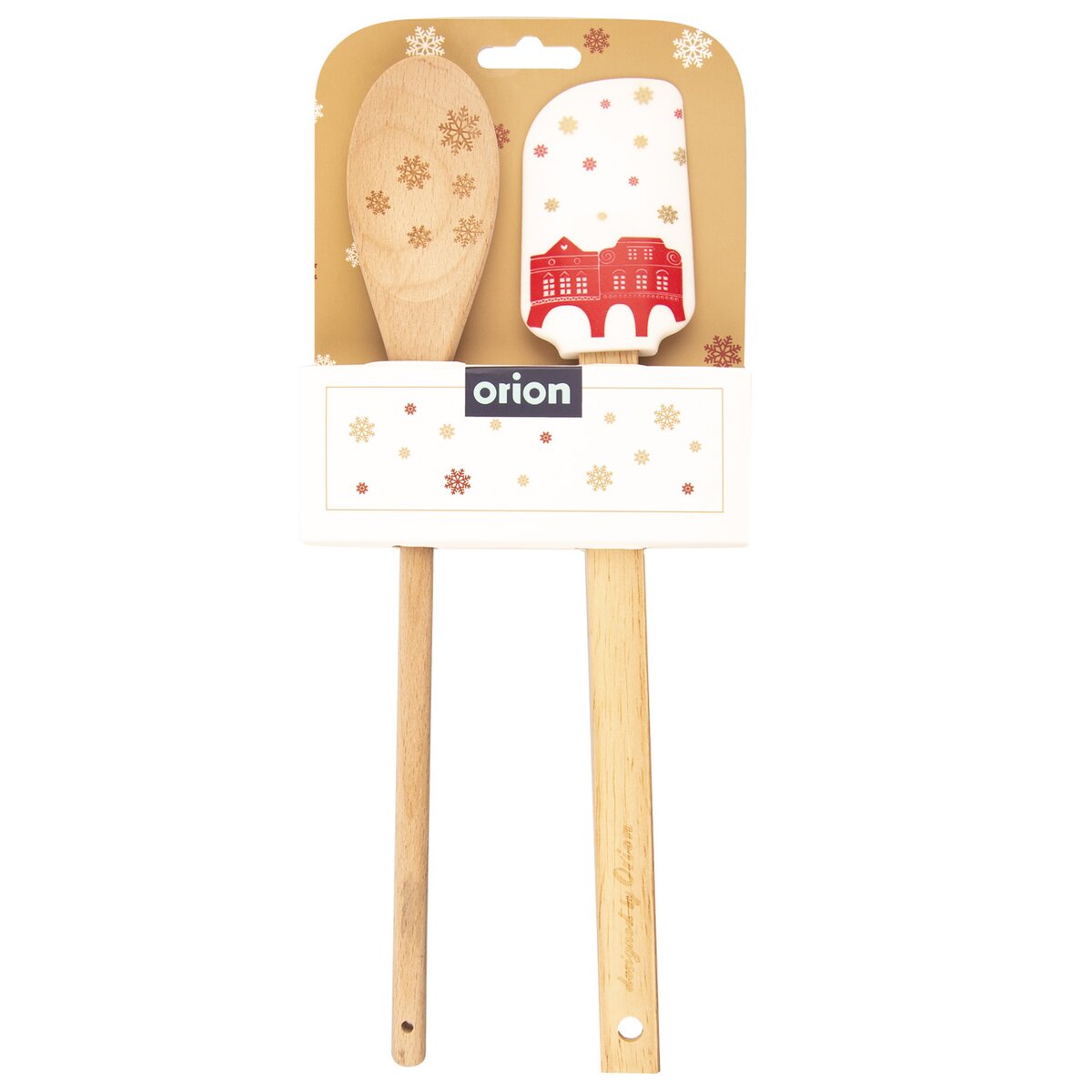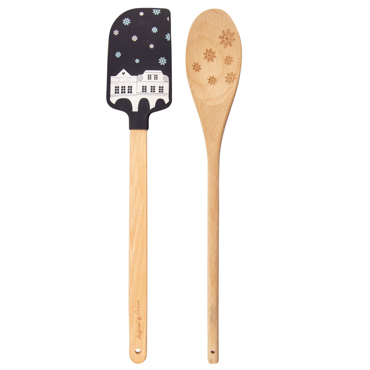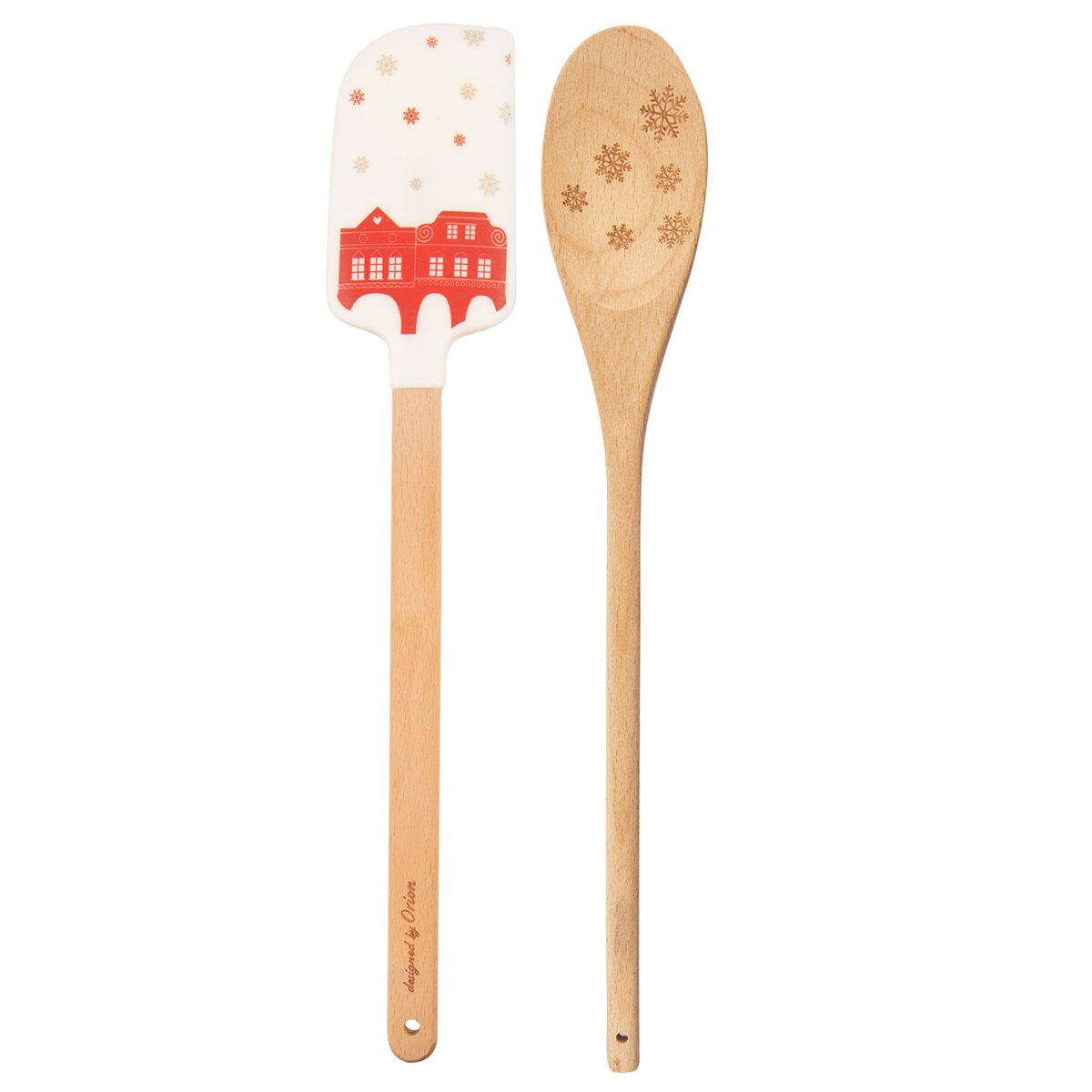 Sada kuchynskej stierky a varešky s vianočným motívom môže byť skvelým darčekom alebo pozornosťou v čase Vianoc. Mäkké hrany stierky dokonale priľnú k nádobe. Dve farebné varianty. Darčekové balenie. Materiál: silikón – možno bez problémov použiť do teploty -40°C do 120°C, je vhodná prakticky pre všetky druhy potravín - ako vodné, napríklad aj kyslé, ale tiež aj s obsahom tuku či oleja vrátane alkoholických, drevo. Rozmery: stierka š. 5 cm, d. 29 cm, vareška š. 4,5 cm, d. 29 cm.