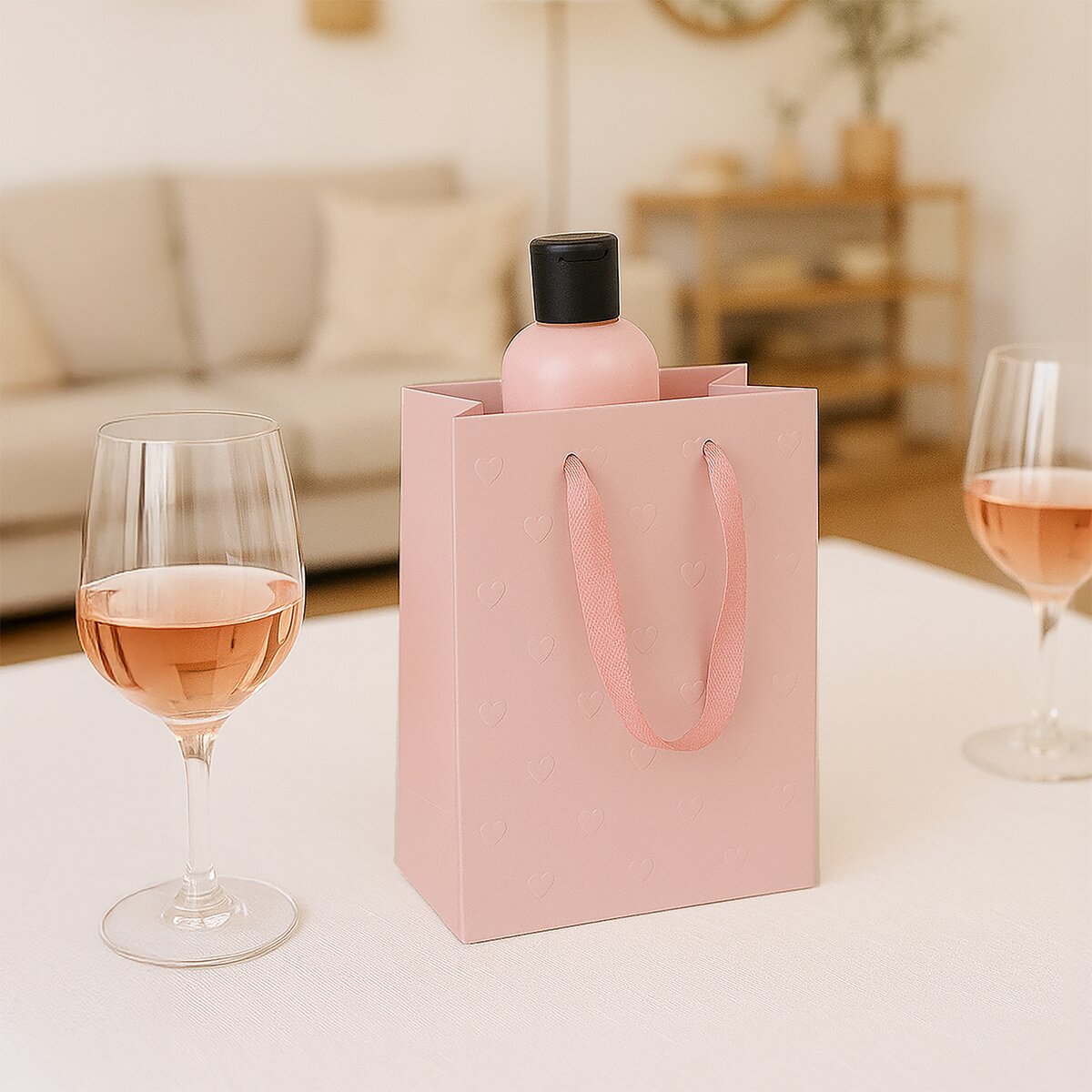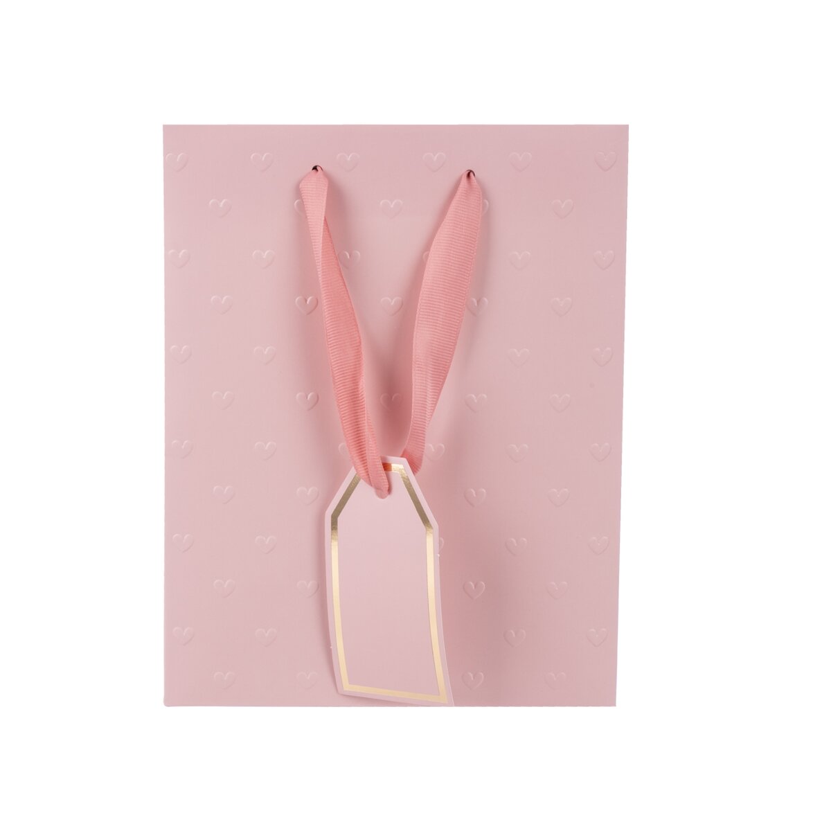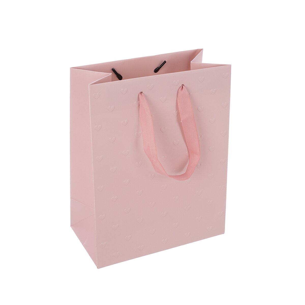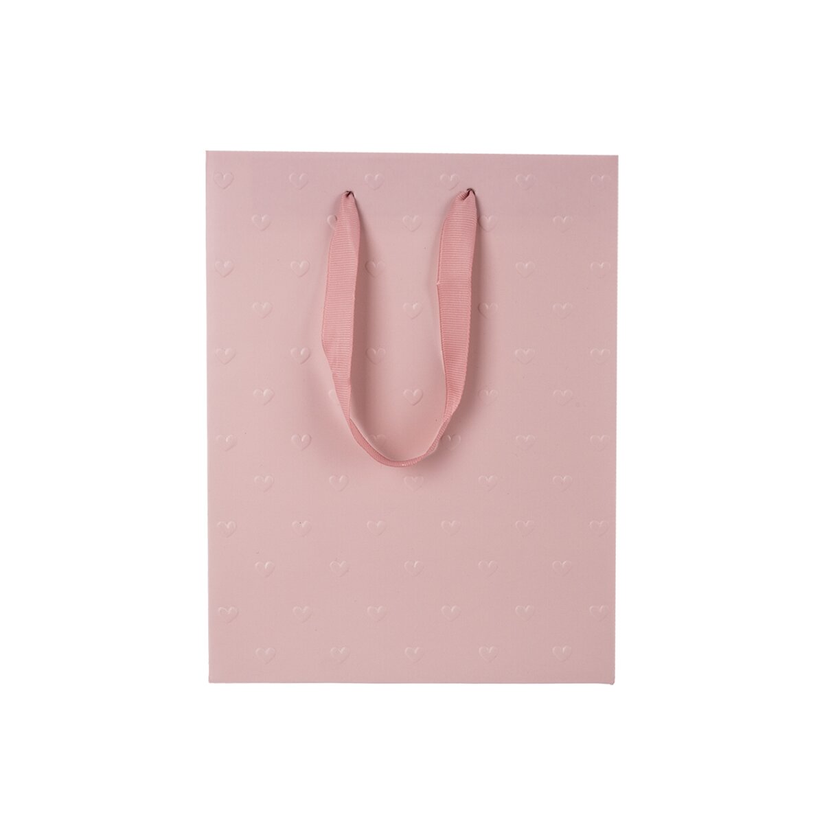 Kód produktu 823121Darčeková taška s dvoma ušami z ružovej stuhy, plastický dekor z oboch strán, doplnená menovkou. Ružová. Materiál: papier, stužka – polyester. Rozmery: 18x10x23 cm.