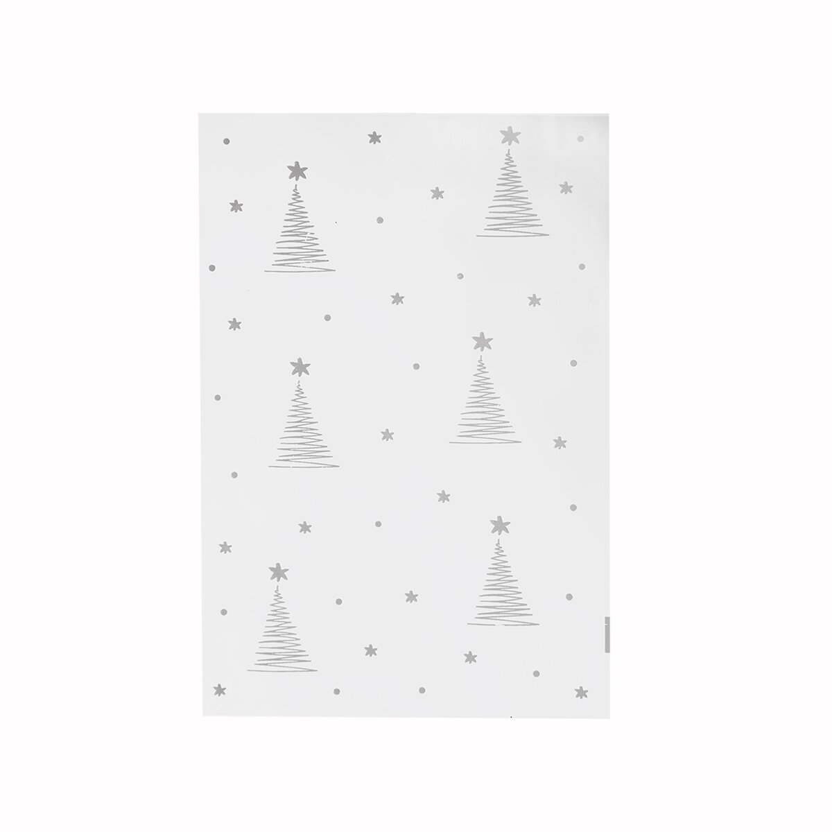 Toto originálne vrecko je priehľadné s decentnou bielou potlačou z prednej strany. Dizajn s vianočnými stromčekmi a snehovými vločkami vznikol v dielni našich dizajnérov.