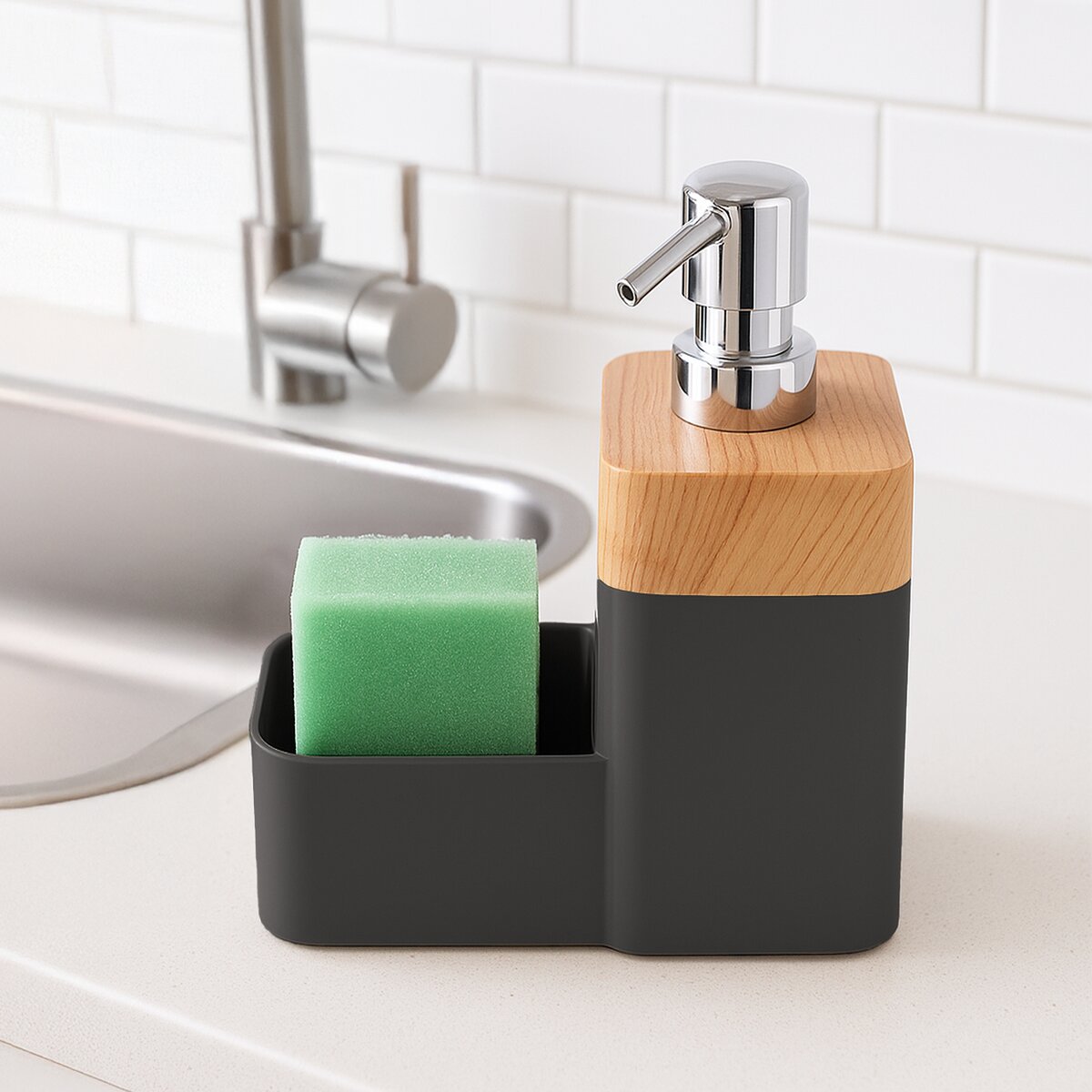 Kód produktu 541902Dávkovač mydla alebo saponátu na kuchynskú linku je praktickým pomocníkom, ktorý uľahčuje dávkovanie tekutých čistiacich prostriedkov. Tento dávkovač obsahuje priehradku na hubku alebo drôtenku, ktoré však nie sú súčasťou balenia. Je ideálny na udržanie poriadku a hygieny v kuchyni. Materiál: plast PS (telo), ABS (mačkadlo), PP (hadička). Rozmery: o. 0,38 l, 15,5x7,5x19,5 cm.