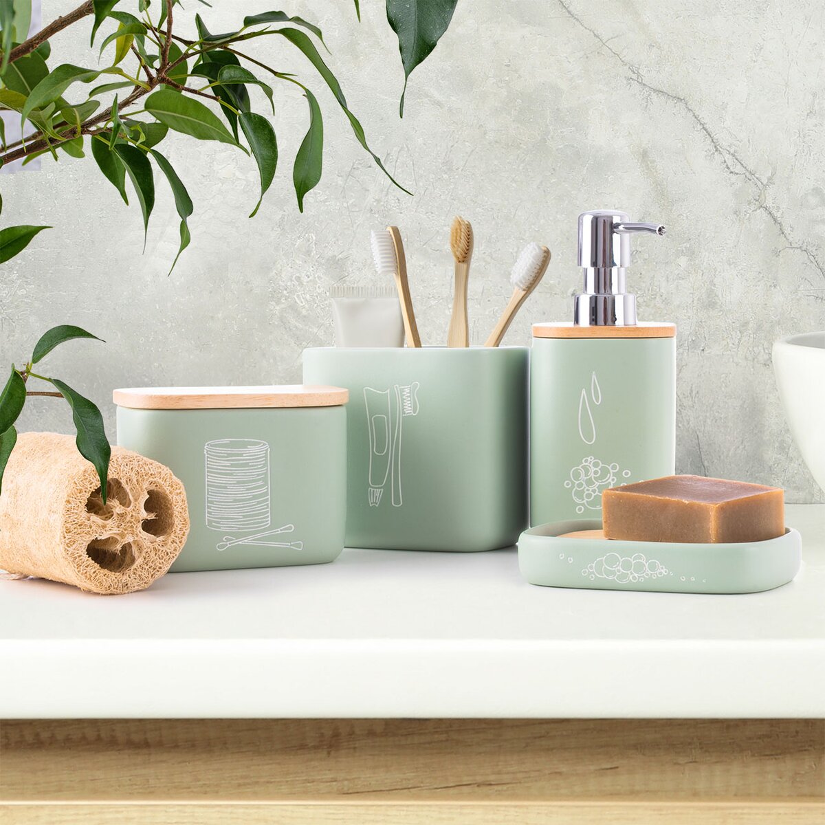 Elegantní pomocníci z kolekcie GREENISH budú užitoční aj v kúpeľni. Dóza v príjemnej zelenej farbe sa hodí na uloženie odličovacích tampónov alebo vatových tyčiniek, ktoré budú vždy po ruke. Skryté, ale napriek tomu nadosah.