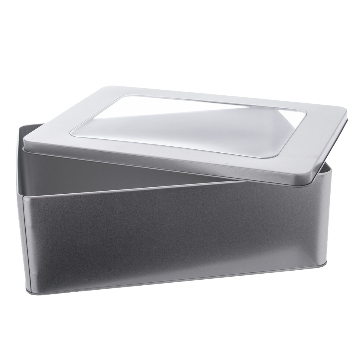 Kód produktu 153659Dóza s viečkom. Skvelá ako darček naplnená vašimi vlastnými cukrovinkami. Priehľadné okienko vo viečku. Materiál: kov, plast. Rozmery: 27x19x9 cm.