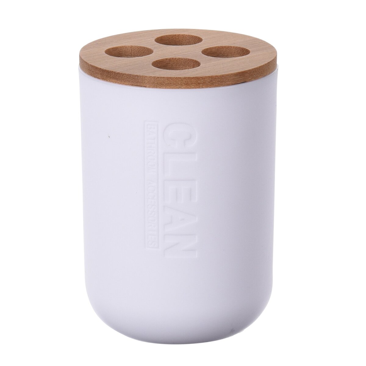Kód produktu 531335Držiak na zubné kefky. Materiál: plast, bambusové drevo. Rozmery: o. 0,33 l, pr. 7 cm, v. 11 cm.