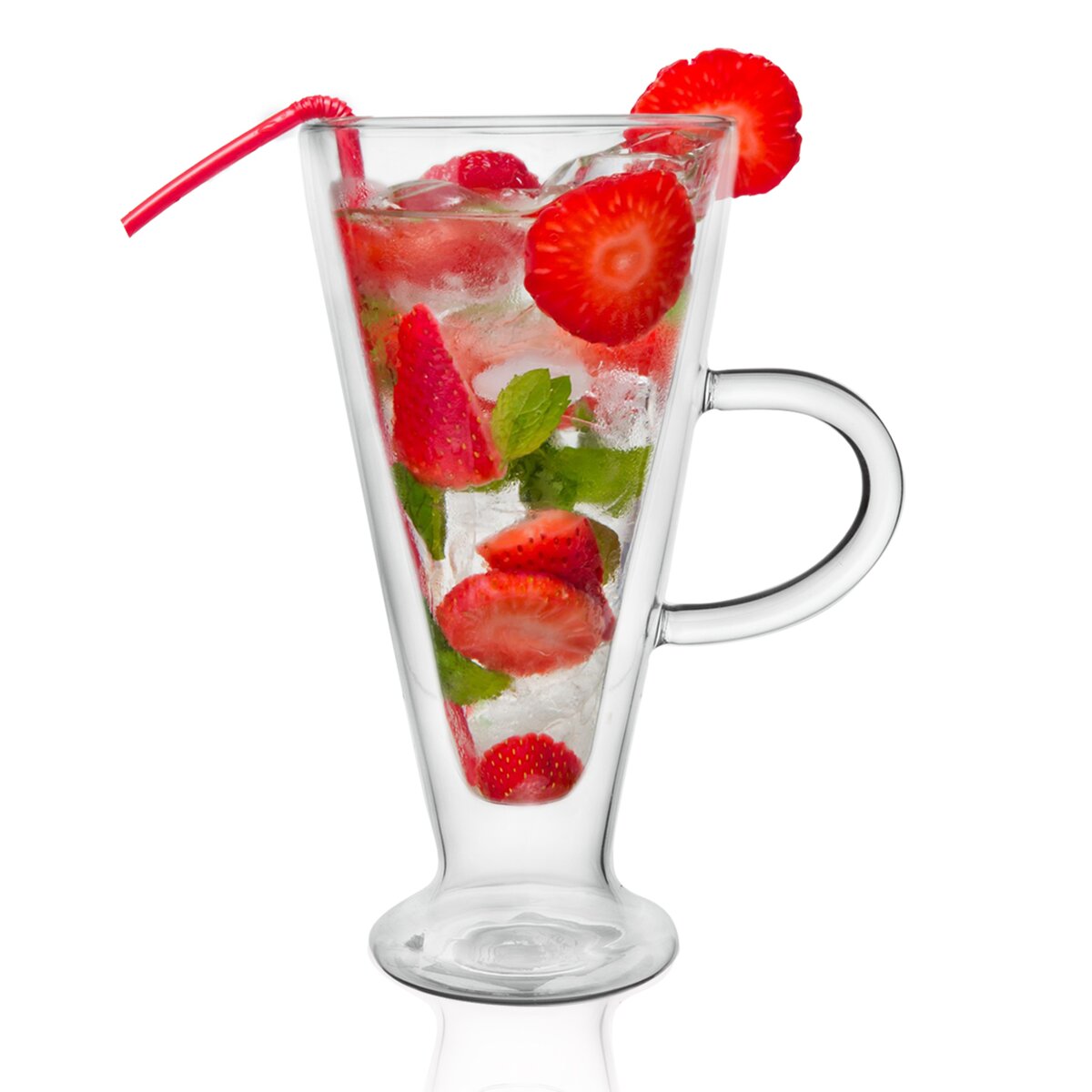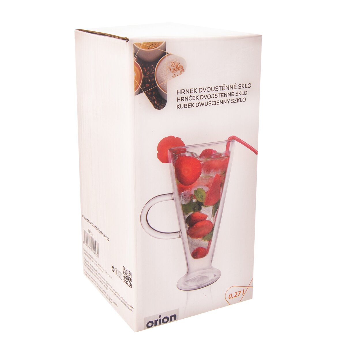 Dvojstenné termo hrnčeky v modernom dizajne by nemali chýbať ani vo vašej domácnosti. Dvojité borosilikátové sklo udrží dlho teplotu nápoja, takže ranná káva len tak nevychladne a osviežujúce nápoje v letnom teple zostanú dlhšie chladné. Výhodou je tiež odolnosť voči vysokým a nízkym teplotám, poškriabaniu, prasklinám i chemikáliám. Sú odolnejšie proti tepelnej deformácii než bežné sklo. Umývanie v umývačke nedoporučujeme, mohlo by dôjsť k preniknutiu vody medzi steny. Materiál: borosilikátové sklo – použitie od -10 °C do +210 °C. Rozmery: objem 0,27 l, pr. 8 cm, v. 16 cm.