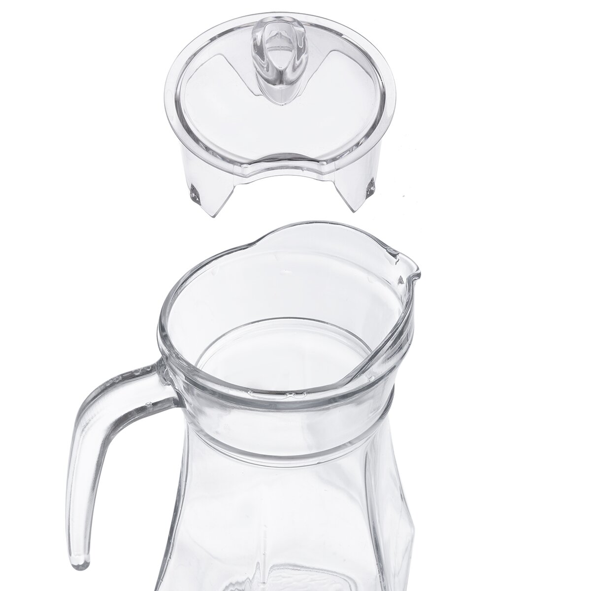 Kód produktu 126660Sklenený džbán so zvislými hranami s objemom 1,3 l je opatrený transparentným plastovým viečkom a je určený na podávanie obľúbených nápojov.