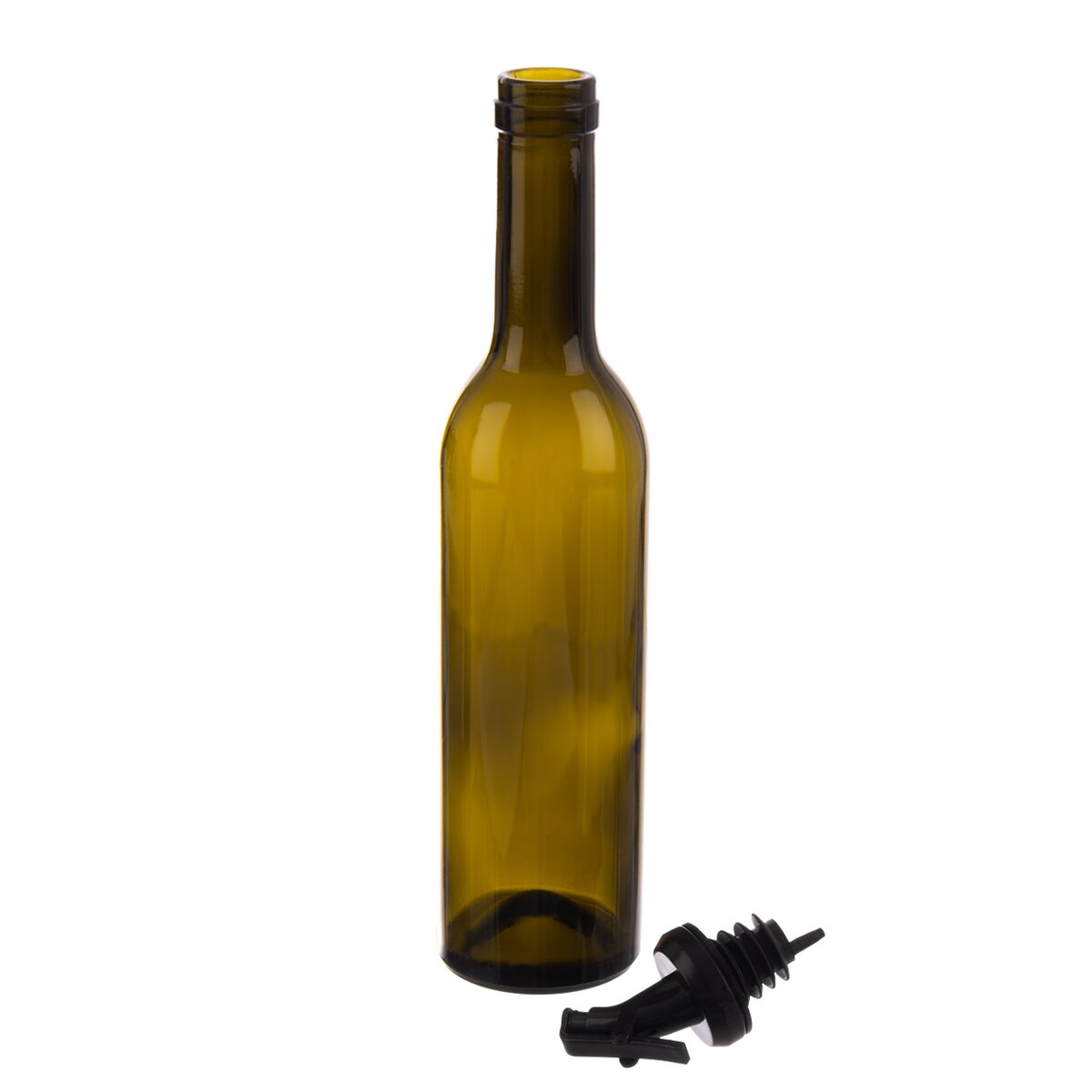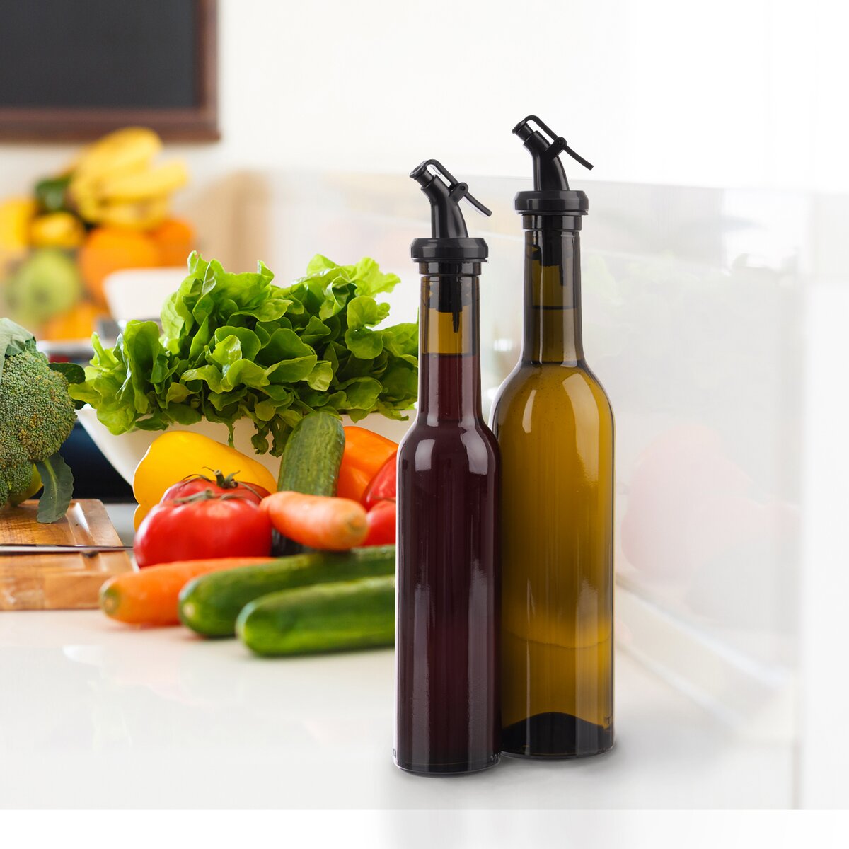Viac informáciíIdeálne skladovanie oleja je v tmavom skle. K tomu napomôže táto fľaša s objemom 380 ml, ktorá má navyše praktický uzáver s výlevkou. Fľaša je tmavá, ale napriek tomu čiastočne priehľadná, takže budete mať prehľad, koľko tekutiny ešte zostáva. Potom je možné uzáver z plastu TPE a ABS sňať a olej, ocot či iné dochucovadlo doplniť.