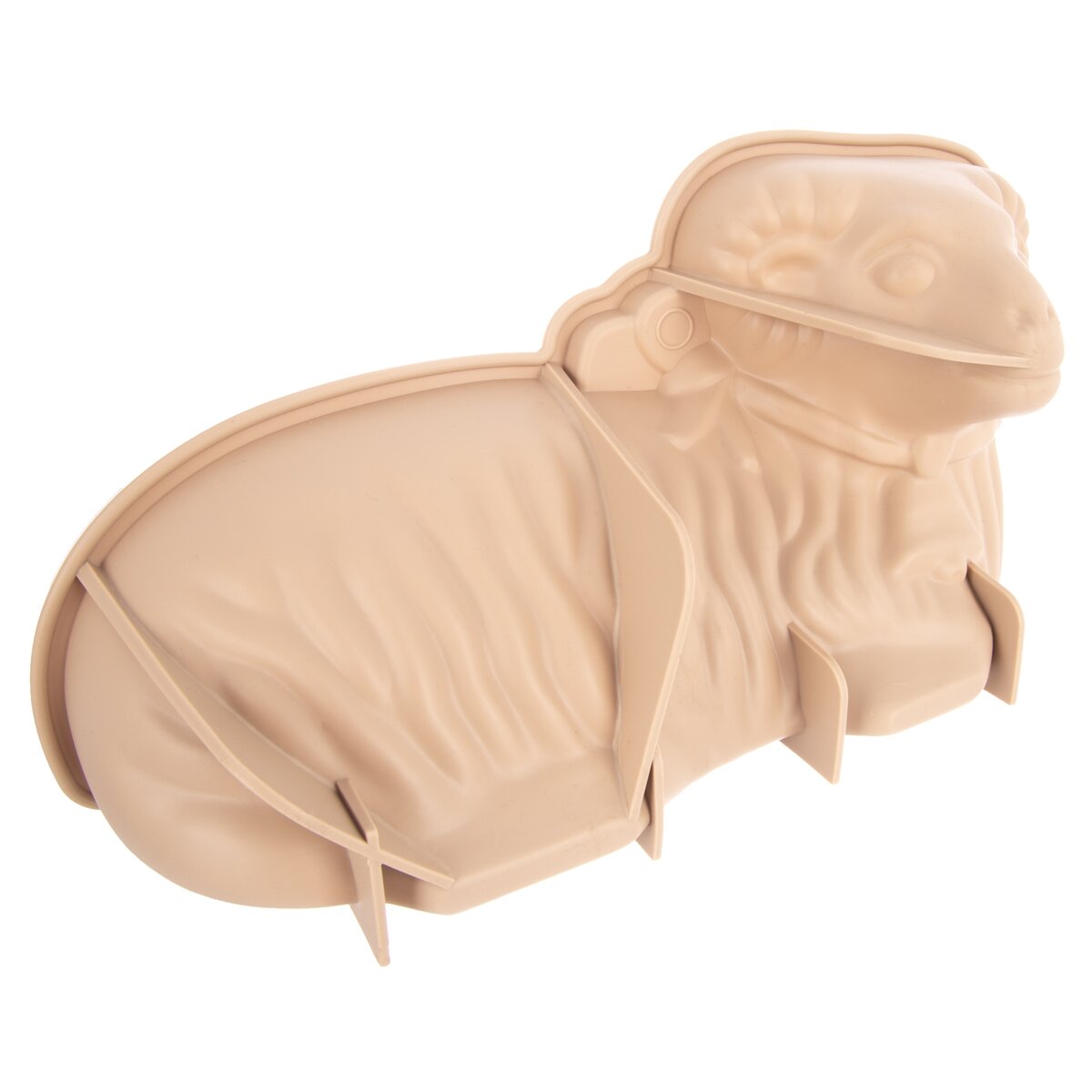 Kód produktu 154464Forma baránok - tradičné pečenie baránka vo forme z moderného materiálu - to musíte vyskúšať. Určite budete spokojní. Baránok sa Vám krásne z formy vyklopí, neprilepí sa k forme, má pekný tvar s vypracovanými detailmi. Cesto sa nepripaľuje, odporúčame však vzhľadom k členitosti formy zľahka vymazať. Forma nepreberá pachy použitých potravín, je hygienická, odolná teplotám od -40 °C do +220 °C. Okrem treného alebo piškótového cesta môžete pripraviť tiež zaujímavý aspik, sekanú, plnku... Materiál: silikón - vystužená pevná forma, ktorá zaistí stabilitu pri pečení a ľahkú manipuláciu s plnou formou. Vhodná do umývačky riadu, mrazničky, rúry aj mikrovlnnej rúry. Rozmery: 31x17x9 cm.