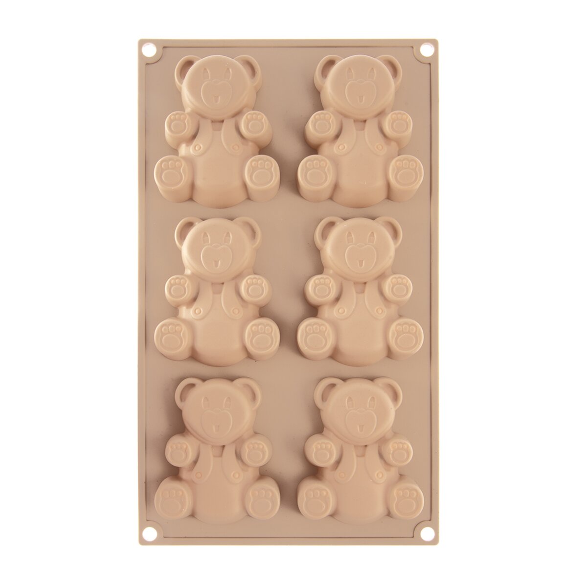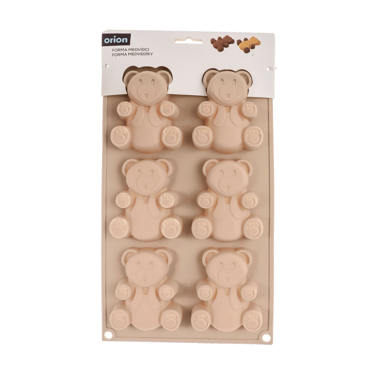 Kód produktu 154439Forma na pečenie Vám pomôže vytvoriť piškótové medvedíky, ktorými potešíte predovšetkým deti. Môžete ich upiecť z piškótového alebo liateho cesta, naplniť čokoládou, marmeládou, ozdobiť polevou, môžete v nej zmraziť ovocnú dreň ... Vo forme pripravíte 6 medvedíkov. Materiál: silikón – forma je ľahká, skladná, nepriľnavá, cesto sa v nej nepripečie, nepreberá pachy z potravín, je odolná teplotám od -40 °C do +200 °C. Ľahko sa udržuje, dá sa umyť v umývačke na riad. Forma je vhodná do plynovej, elektrickej aj teplovzdušnej rúry, do chladničky a mrazničky. Rozmery: 31x18x2cm, veľkosť medvedíka 8,5x7 cm.