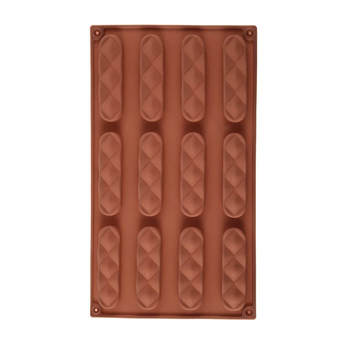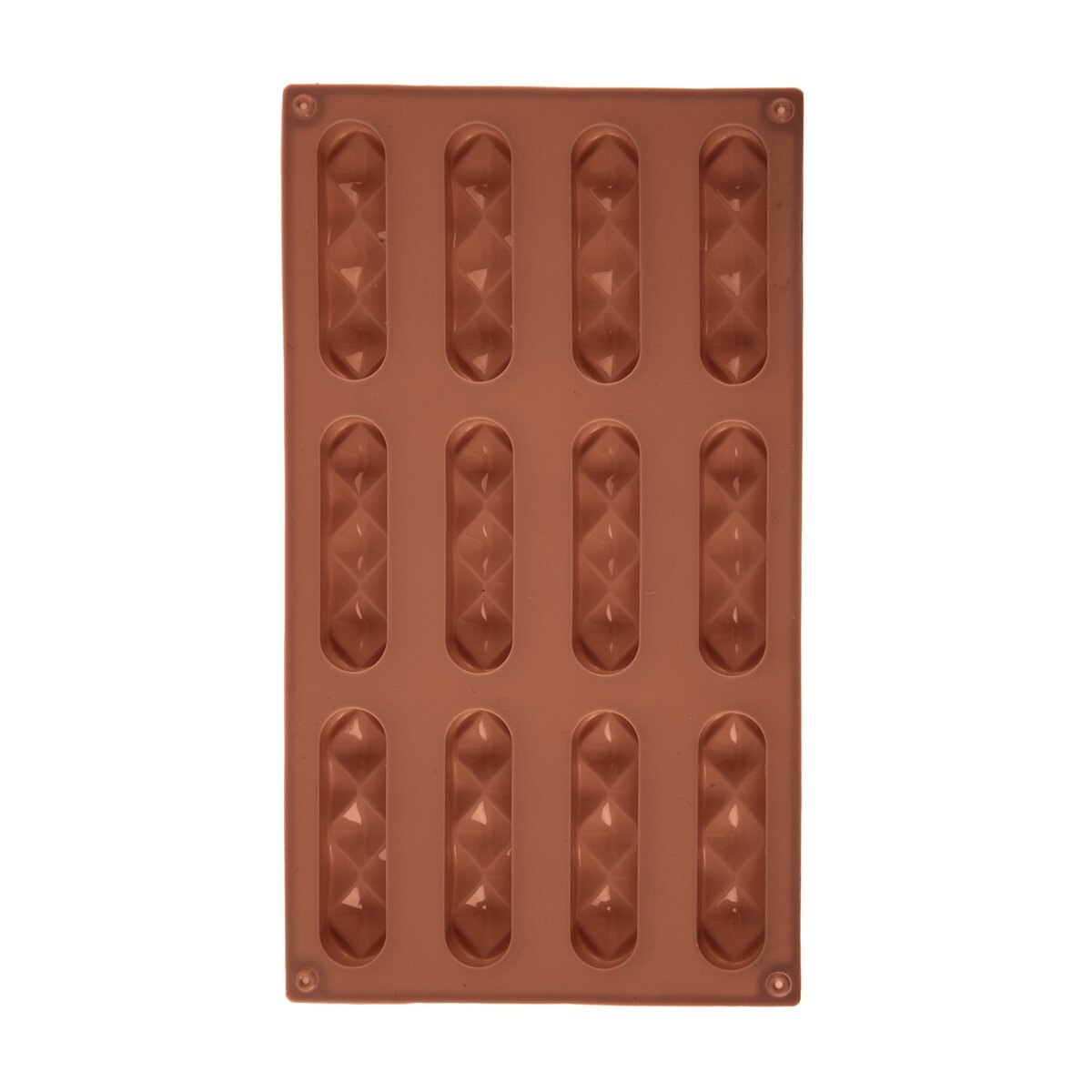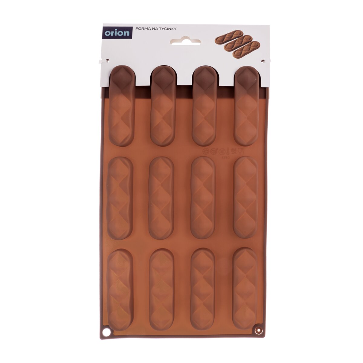 Kód produktu 154445Nepriľnavá hnedá silikónová forma pre rýchle a rovnomerné pečenie 12 ks tyčiniek. Jedna formička má rozmer 8,2x2,1 cm.
