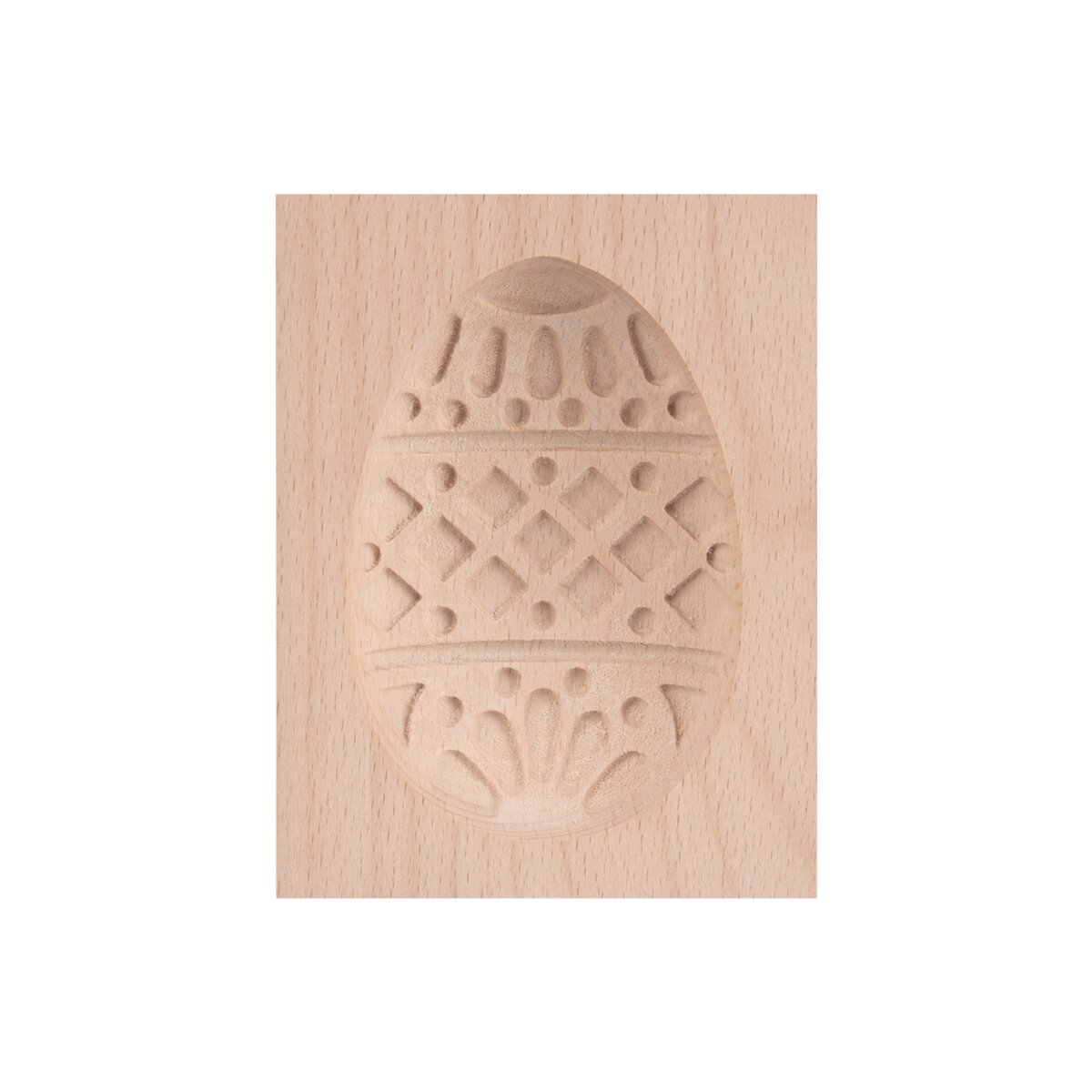 Kód produktu 121042Drevená forma veľkonočné VAJÍČKO je vyrobená z kvalitného bukového dreva a je určená na vytváranie dekoratívnych sušienok. Vďaka detailnej rezbe vznikajú krásne a presné vzory. Forma je vhodná nielen na sušienky, ale aj na perníčky, čokoládu alebo želé. Využiť ju možno aj pri výrobe domáceho mydla, keramiky či pri detskom tvorení. Ideálna je pri vytváraní dekorácií zo samotvrdnúcej hmoty alebo iných kreatívnych materiálov. Pre ľahké vybratie odporúčame formu vystlať potravinárskou fóliou. Na vytvorenie dokonalého reliéfu a ľahkého vybratia cesta z formy je vhodné cesto pred vtlačením pomúčiť alebo drevenú formu vyprášiť múkou, napr. pomocou štetca. Pre zachovanie vzoru aj po upečení, používajte cestá bez kypriacich prísad alebo iba s ich minimálnym množstvom. Materiál: bukové drevo. Rozmery: 7,5x9,5x2,4 cm, vajíčko 5,7x8,2 cm. Nie je vhodná do umývačky ani do rúry.