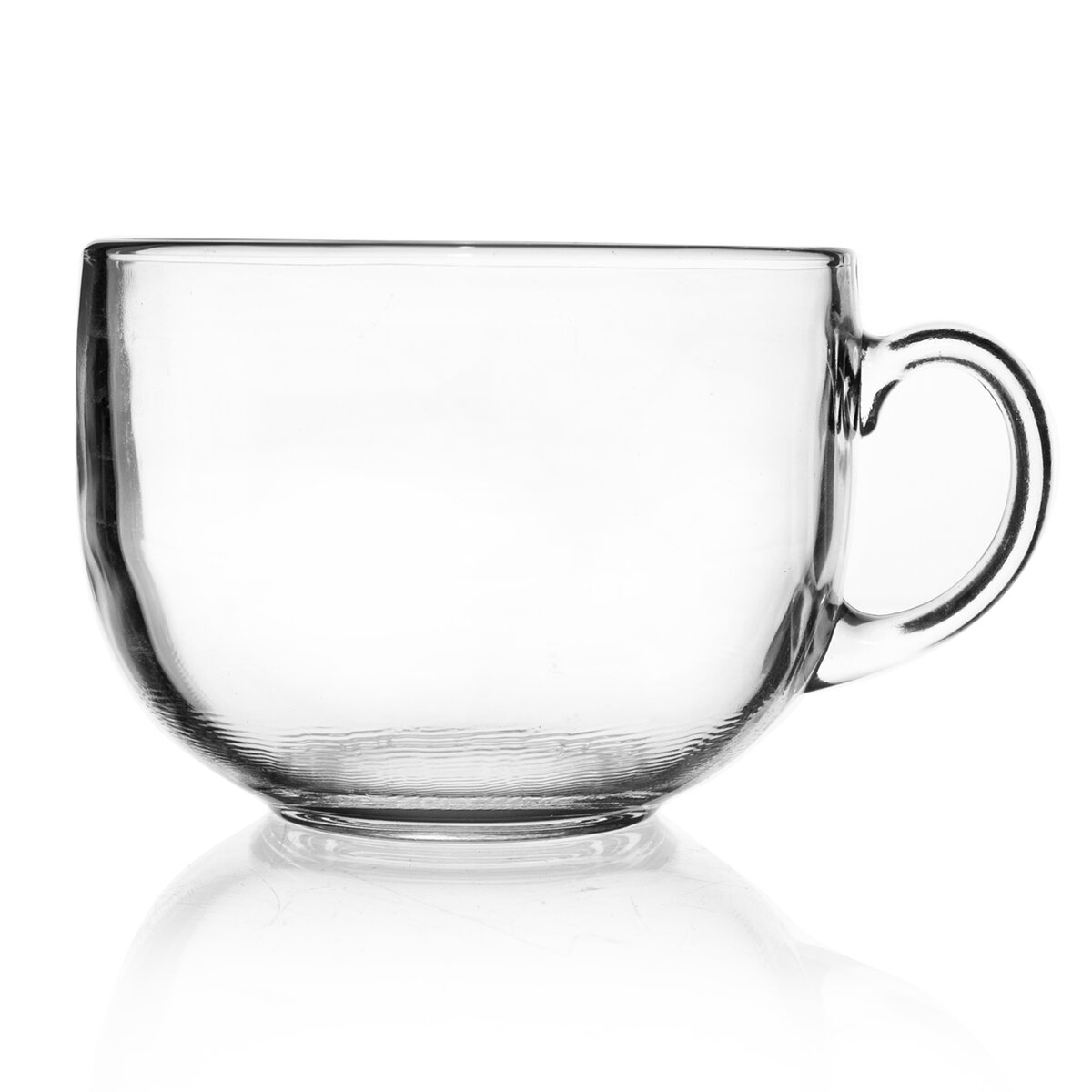 Hrnček sklo s uškom. Materiál: sklo. Je možné použiť v MVR, umývačku riadu neodporúčame – aby sklo zostalo lesklé a priehľadné. Rozmery: objem 0,65 l, pr. 12 cm, v. 9 cm.