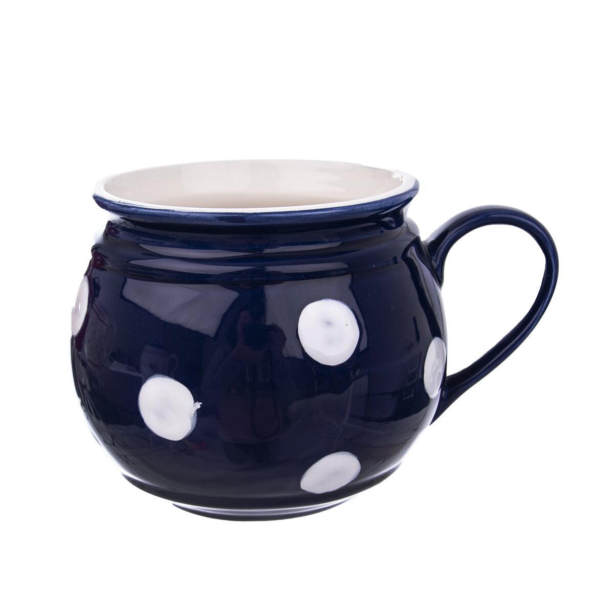 Hrnček s uchom na poriadnu dávku bielej kávy, melty, čaju,.... farebné varianty - séria riadu KRAJÁČ. Krásna dekorácia do interiérov chalúp a štýlových kuchýň. Materiál: keramika (môže sa stať, že vplyvom tepla popraská vnútorná glazúra a tekutiny, ktoré farbia, môžu vytvoriť tmavý odtieň vo vnútri nádoby).Nie je to závada, je to klasický jav u keramických nádob. Nemôže byť dôvodom reklamácie). Rozmery: objem 0,75 l, pr. 12 cm, v. 10 cm.