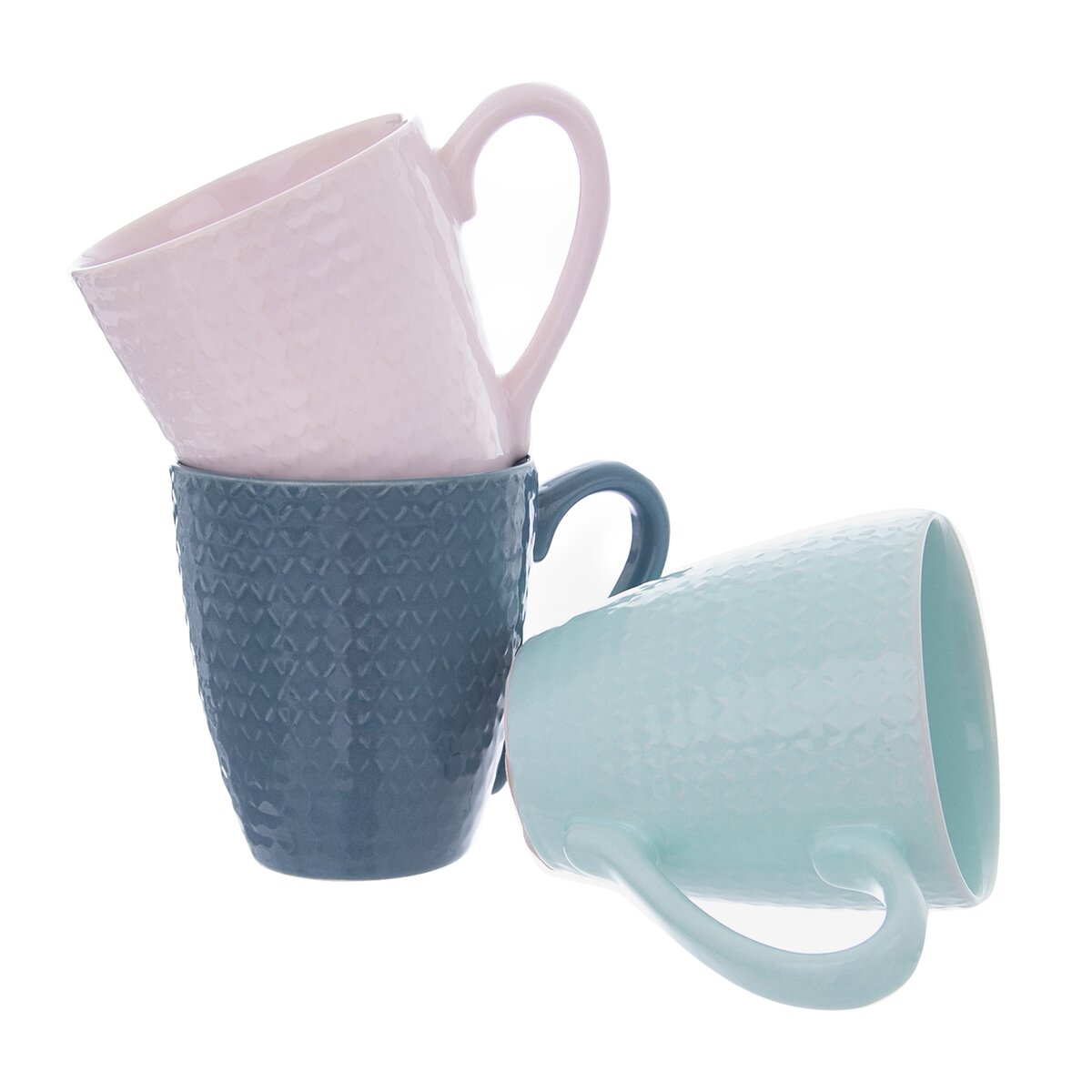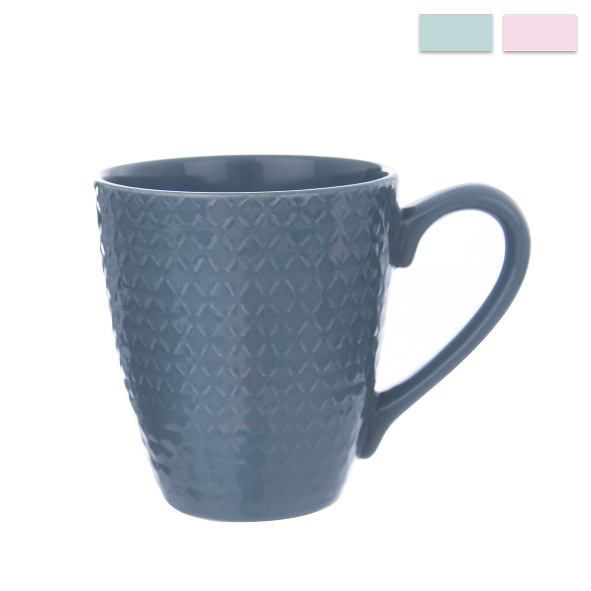 Kód produktu 127254Hrnček s uchom a plastickým dekorom. Materiál: keramika. Vhodný do umývačky riadu i MVR. V niekoľkých farebných variantách. Rozmery: objem 0,43 l, pr. 9,5 cm, v. 10,5 cm.