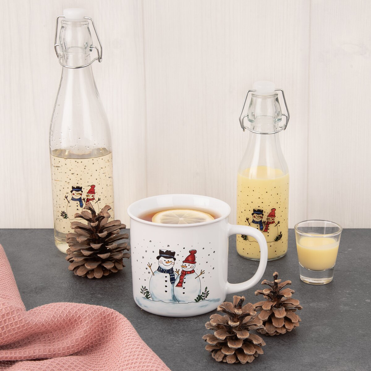 Kód produktu 129694Keramický biely hrnček s dekorom snehuliaka má objem 0,51 l a je určený na podávanie čaju, veľkej bielej kávy, kakaa, vareného vína a ďalších nápojov nielen v období Adventu.