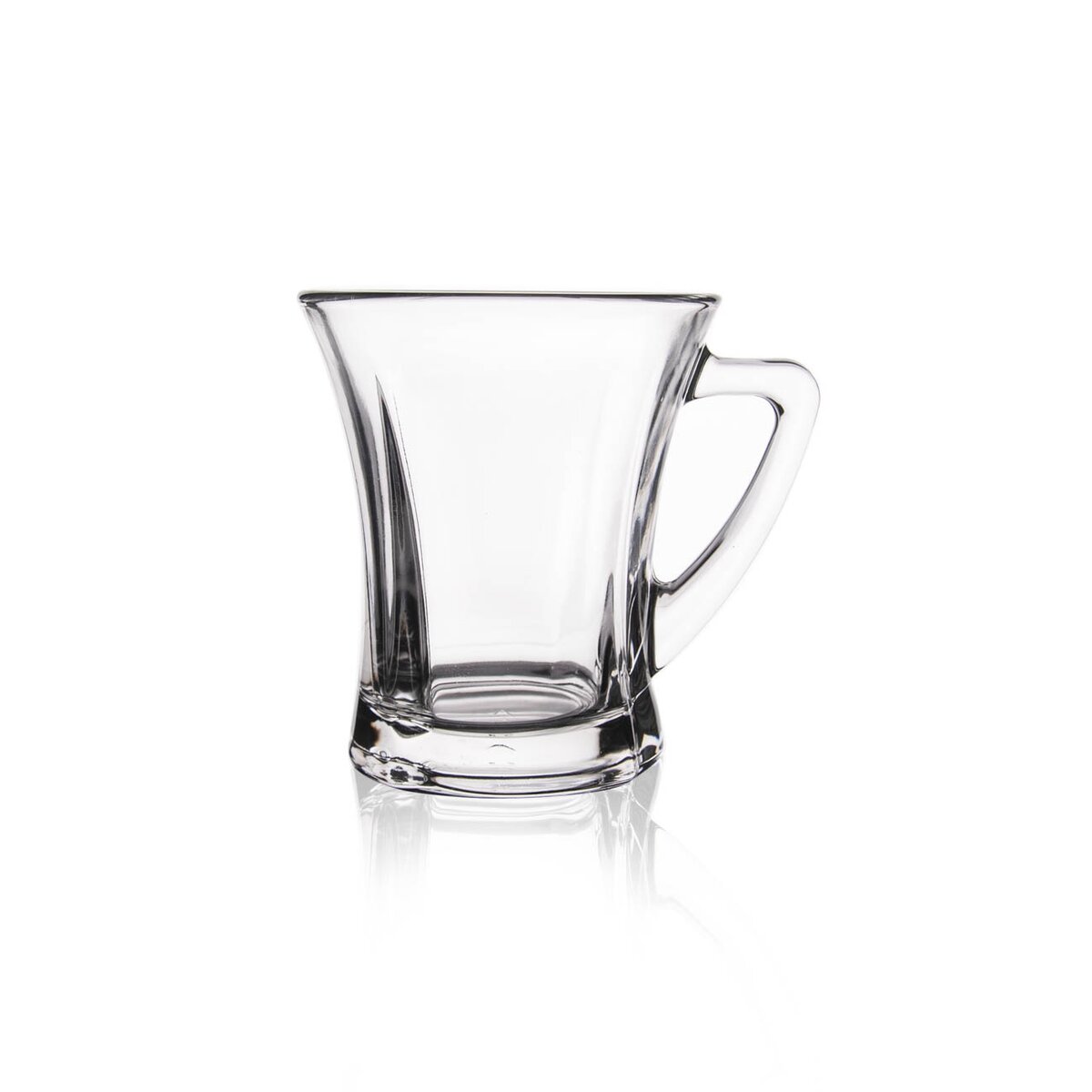 Kód produktu 124399Hrnček s uchom. Materiál: sklo. Rozmery: pr. 8 cm, v. 9,5 cm.