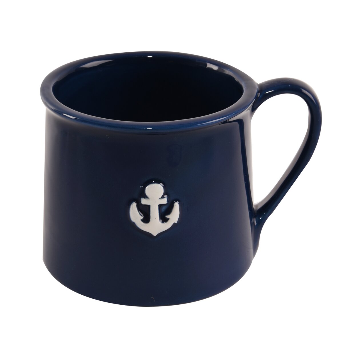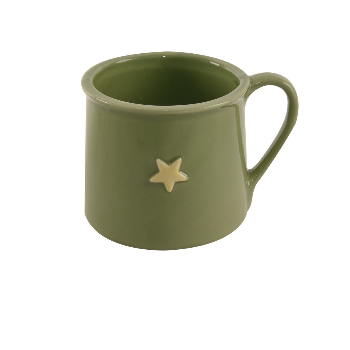 Hrnček s uchom. Varianty dekorov a farieb. Materiál: keramika. Rozmery: objem 0,55 l, pr. 10 cm, v. 9 cm.