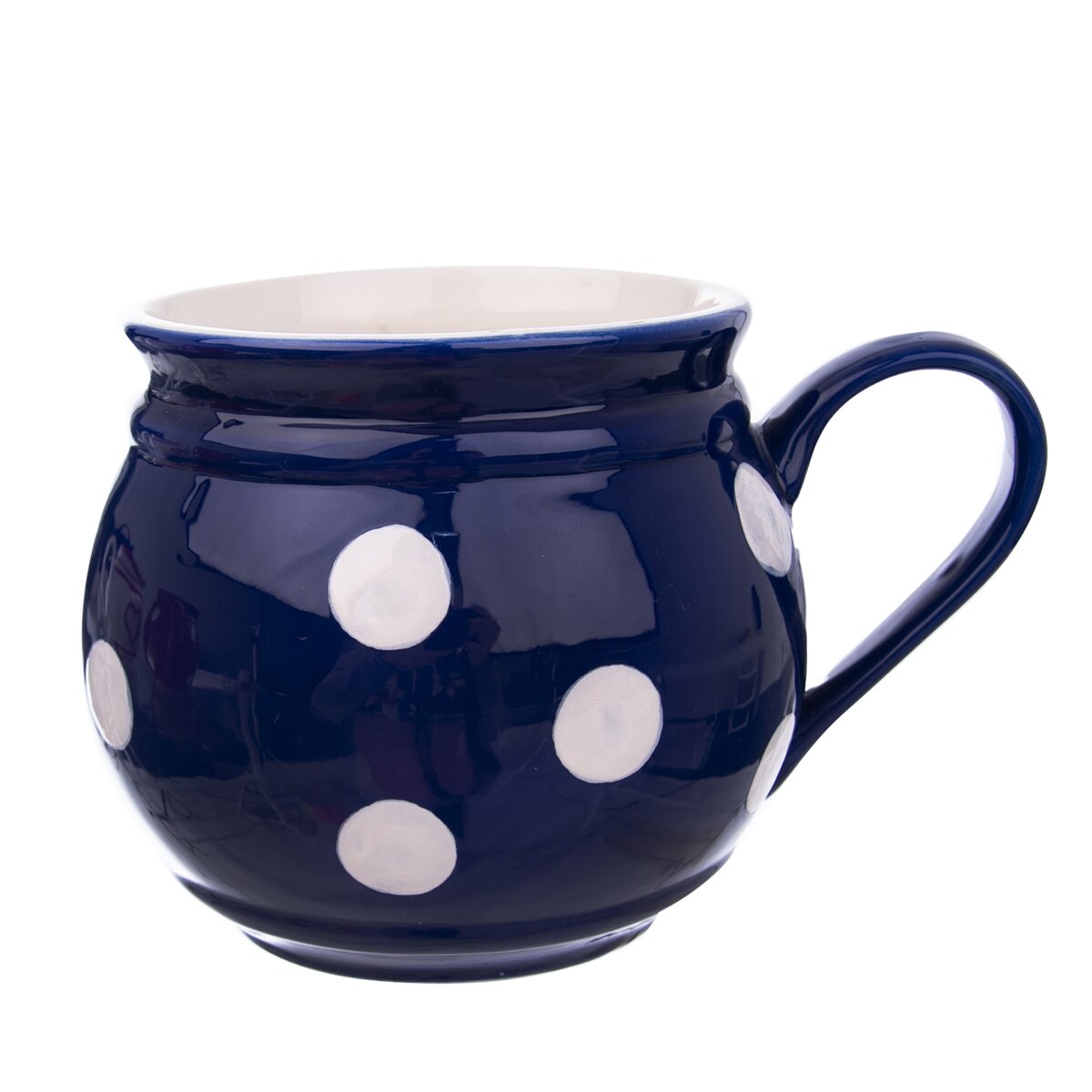 Kód produktu 125655Modrý keramický hrnček KRÁJAČ s objemom 1 l s bielymi bodkami.
