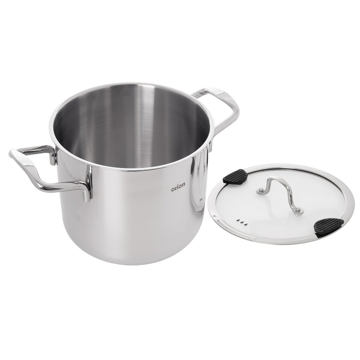 Kód produktu 113377Nerezový hrniec je vybavený sklenenou pokrievkou s výlevkou, ktorá slúži na bezpečné a pohodlné vypúšťanie vody či cedenie. Výlevka zároveň umožňuje únik pary počas varenia. Pokrievka obsahuje silikónové prvky, ktoré uľahčujú cedenie bez potreby použitia utierky alebo iných ochranných pomôcok. Teplotná odolnosť pokrievky aj silikónových častí je až 200 °C, a to vzhľadom k použitým materiálom – tepelne odolnému sklu a silikónu. Hrniec je vhodný na použitie na indukciu, je možné ho umývať v umývačke riadu a je možné ho používať aj v rúre. Návod na obsluhu je súčasťou balenia. Materiál: nerezová oceľ 304, hliník (sendvičové dno) + pokrievka - sklo, nerez, silikón. Rozmery: o. 3,5 l, pr. 18 cm, v. s pokrievkou 18 cm, v. 14 cm, š. 26 cm.