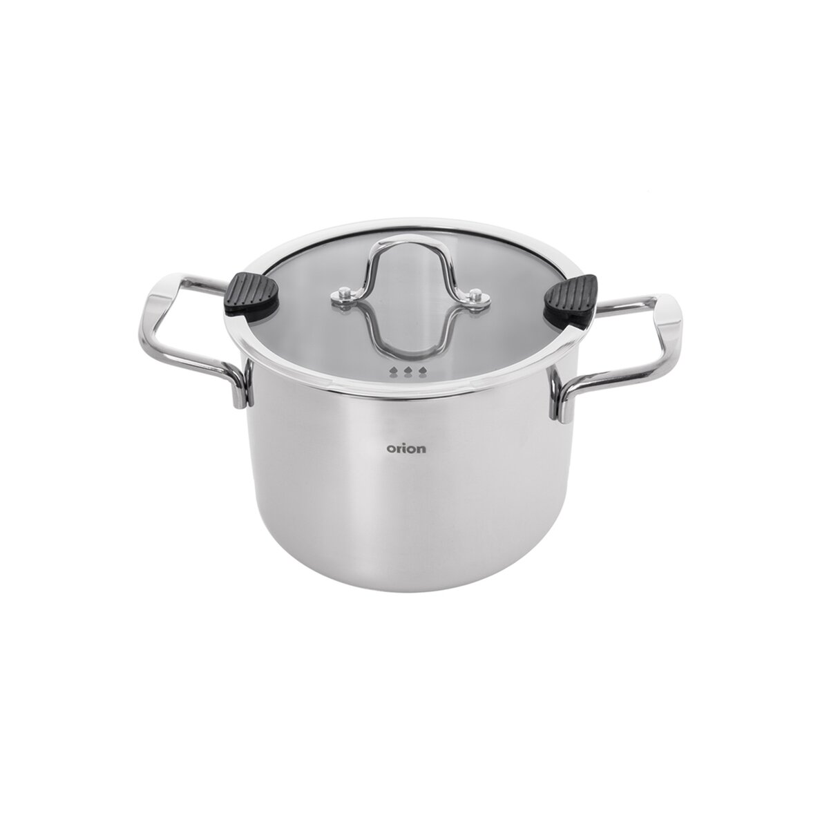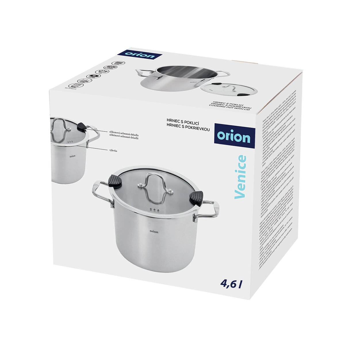 Kód produktu 113378Nerezový hrniec je vybavený sklenenou pokrievkou s výlevkou, ktorá slúži na bezpečné a pohodlné vypúšťanie vody či cedenie. Výlevka zároveň umožňuje únik pary počas varenia. Pokrievka obsahuje silikónové prvky, ktoré uľahčujú cedenie bez potreby použitia utierky alebo iných ochranných pomôcok. Teplotná odolnosť pokrievky aj silikónových častí je až 200 °C, a to vzhľadom k použitým materiálom – tepelne odolnému sklu a silikónu. Hrniec je vhodný na použitie na indukciu, je možné ho umývať v umývačke riadu a je možné ho používať aj v rúre. Návod na obsluhu je súčasťou balenia. Materiál: nerezová oceľ 304, hliník (sendvičové dno) + pokrievka - sklo, nerez, silikón. Rozmery: o. 4,6 l, pr. 20 cm, v. s pokrievkou 19 cm, v. 15 cm, š. 31,5 cm.