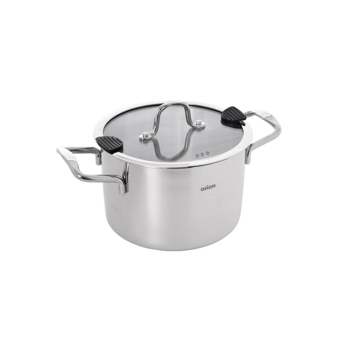 Kód produktu 113371Nerezový kastról je vybavený sklenenou pokrievkou s výlevkou, ktorá slúži na bezpečné a pohodlné vypúšťanie vody či cedenie. Výlevka zároveň umožňuje únik pary počas varenia. Pokrievka obsahuje silikónové prvky, ktoré uľahčujú cedenie bez potreby použitia utierky alebo iných ochranných pomôcok. Teplotná odolnosť pokrievky aj silikónových častí je až 200 °C, a to vzhľadom k použitým materiálom – tepelne odolnému sklu a silikónu. Kastról je vhodný na použitie na indukciu, je možné ho umývať v umývačke riadu a je možné ho používať aj v rúre. Návod na obsluhu je súčasťou balenia. Materiál: nerezová oceľ 304, hliník (sendvičové dno) + pokrievka - sklo, nerez, silikón. Rozmery: o. 1,9 l, pr. 16 cm, v. s pokrievkou 13 cm, v. 10 cm, š. 24,5 cm.
