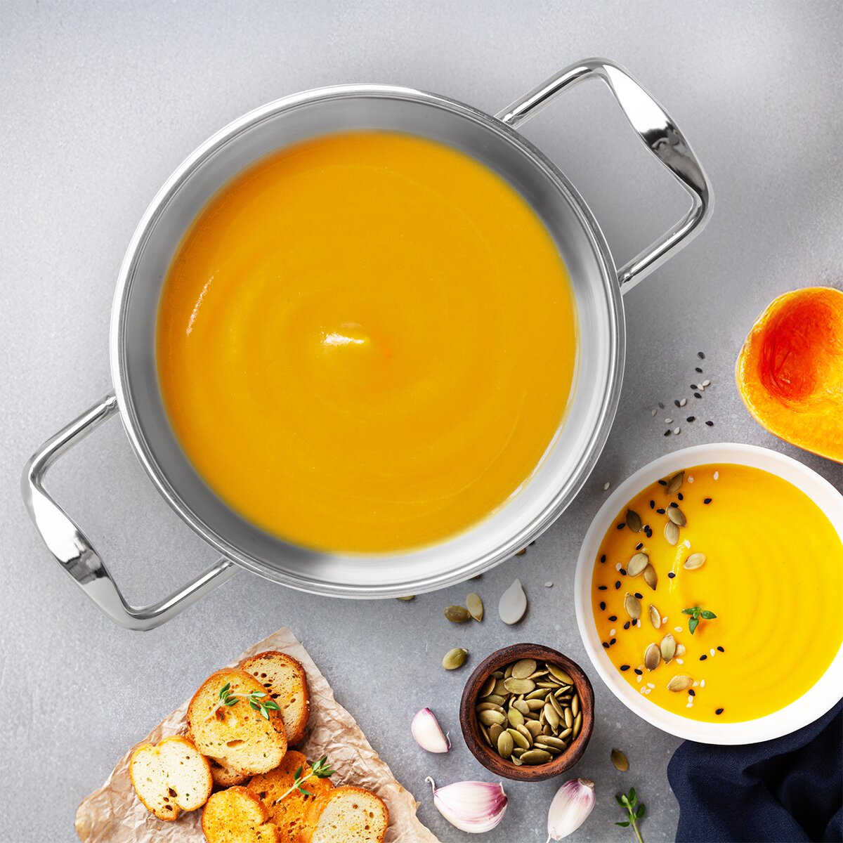 Kód produktu 113373Nerezový kastról je vybavený sklenenou pokrievkou s výlevkou, ktorá slúži na bezpečné a pohodlné vypúšťanie vody či cedenie. Výlevka zároveň umožňuje únik pary počas varenia. Pokrievka obsahuje silikónové prvky, ktoré uľahčujú cedenie bez potreby použitia utierky alebo iných ochranných pomôcok. Teplotná odolnosť pokrievky aj silikónových častí je až 200 °C, a to vzhľadom k použitým materiálom – tepelne odolnému sklu a silikónu. Kastról je vhodný na použitie na indukciu, je možné ho umývať v umývačke riadu a je možné ho používať aj v rúre. Návod na obsluhu je súčasťou balenia. Materiál: nerezová oceľ 304, hliník (sendvičové dno) + pokrievka - sklo, nerez, silikón. Rozmery: o. 3 l, pr. 20 cm, v. s pokrievkou 14 cm, v. 10 cm, š. 32 cm.