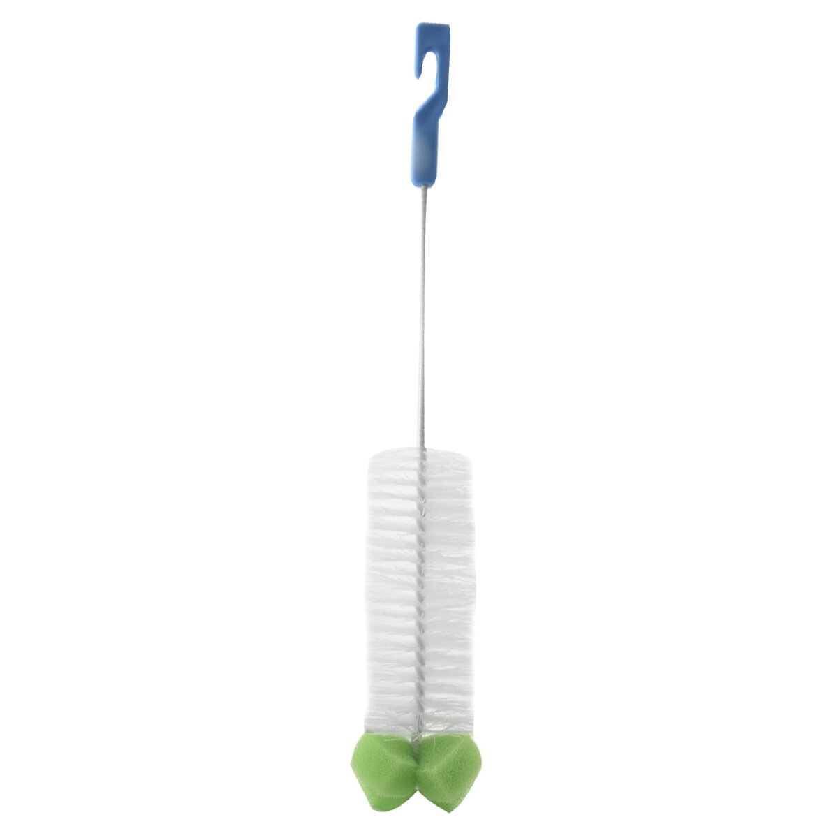 Fľaše, termosky i karafy. S touto kefou budou v okamžiku jako nové. V spodnej časti je hubka, ktorá slúži k preciznemu vyčisteniu dna nádoby, na ktorú možno naniesť saponát alebo čistiaci piesok. Kefa má také háčik na zavesenie. Obsahuje plast PP.