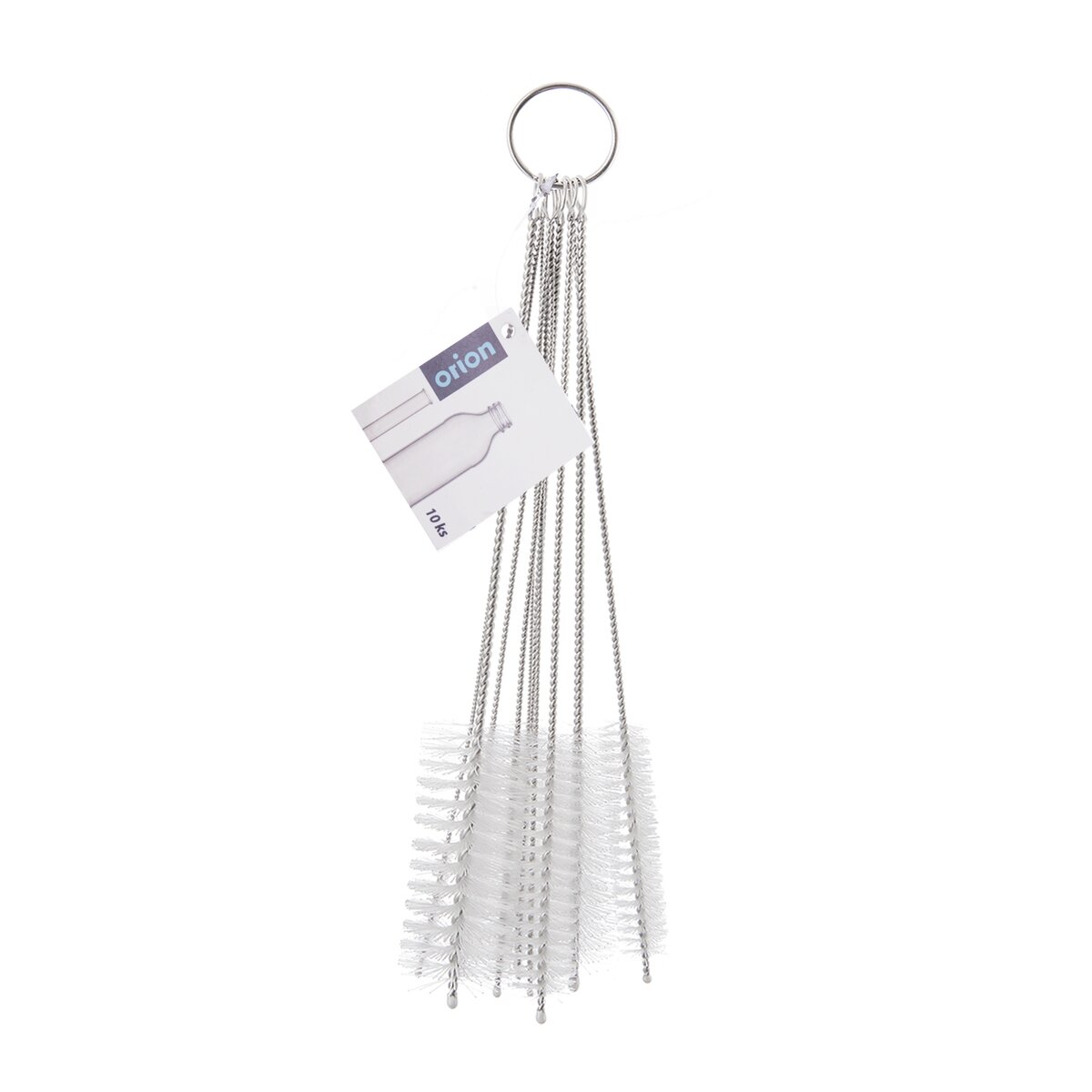 Kód produktu 151413Sada 10 kusov rôzne širokých kefiek z nylonu na nerezovej rukoväti sa hodí na čistenie slamiek, úzkych hrdiel rôznych fliaš, termosiek a kanvíc.