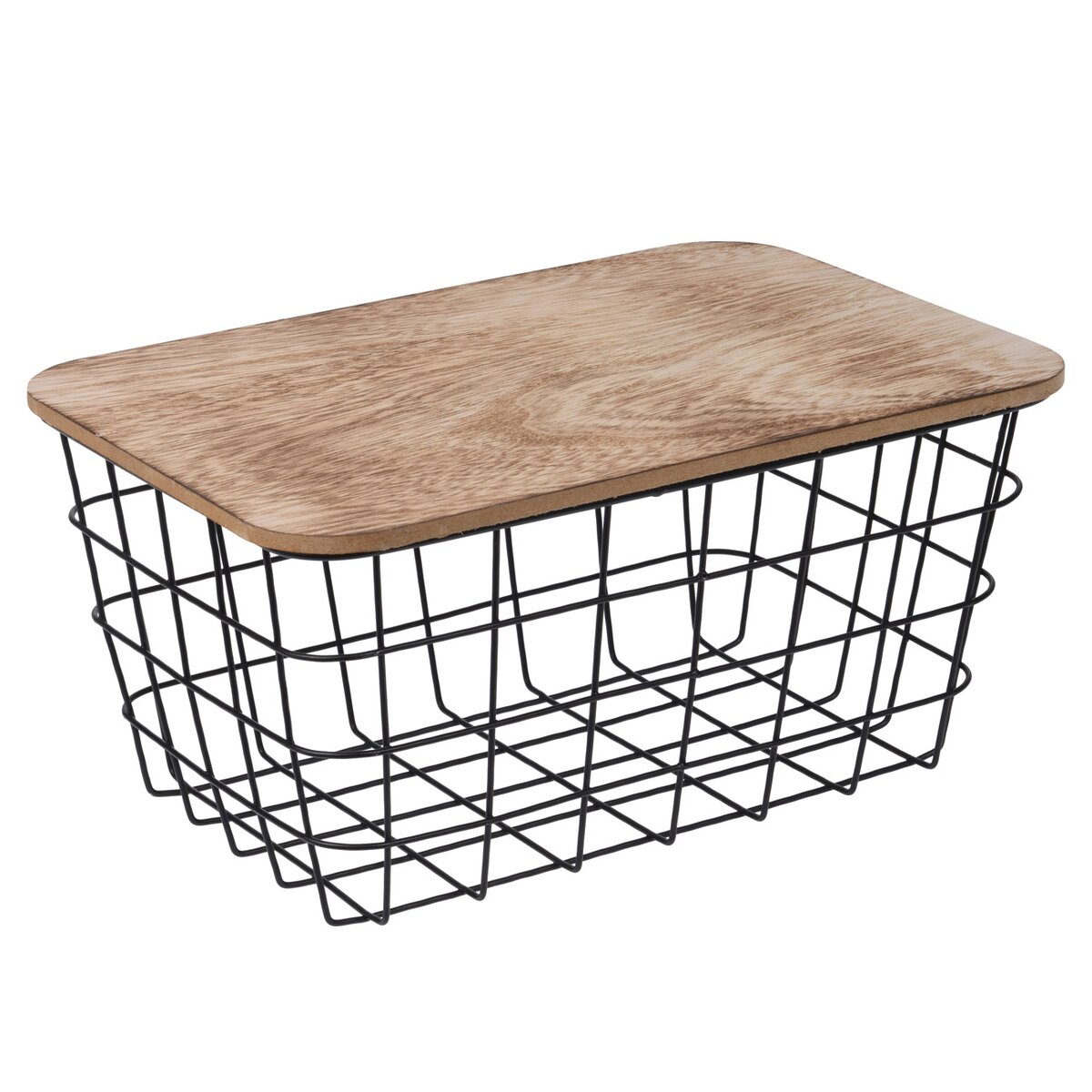 Kód produktu 141844Drôtěný košík s dreveným viečkom. Materiál: kov, drevo. Rozmery: 31,5x21,5x15,5 cm.