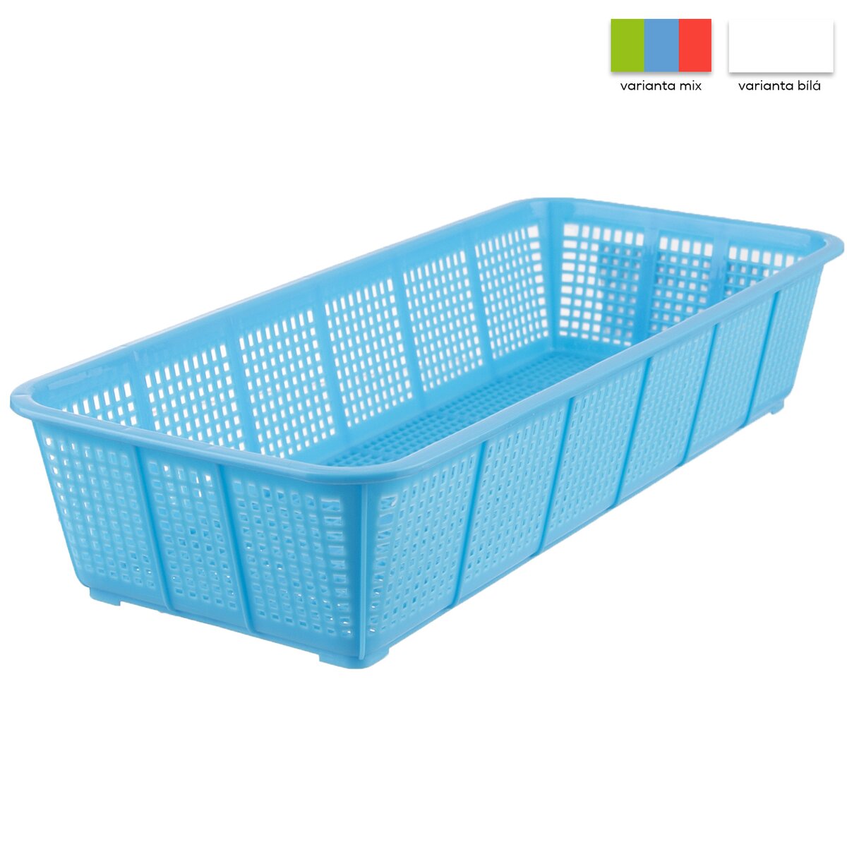 Kód produktu 731130Košík - organizér Vám pomôže usporiadať príbory, kuchynské náčinie, koreničky a iné drobnosti v kuchynských zásuvkách, ale môžete ho tiež využiť v zásuvkách pracovni, v detskej izbe, v dielni... Môžete kombinovať s inými veľkosťami z našej ponuky košíkov. Materiál: plast.. Farebný assort. Rozmery: (šxhxv) 35x15,5x7 cm.