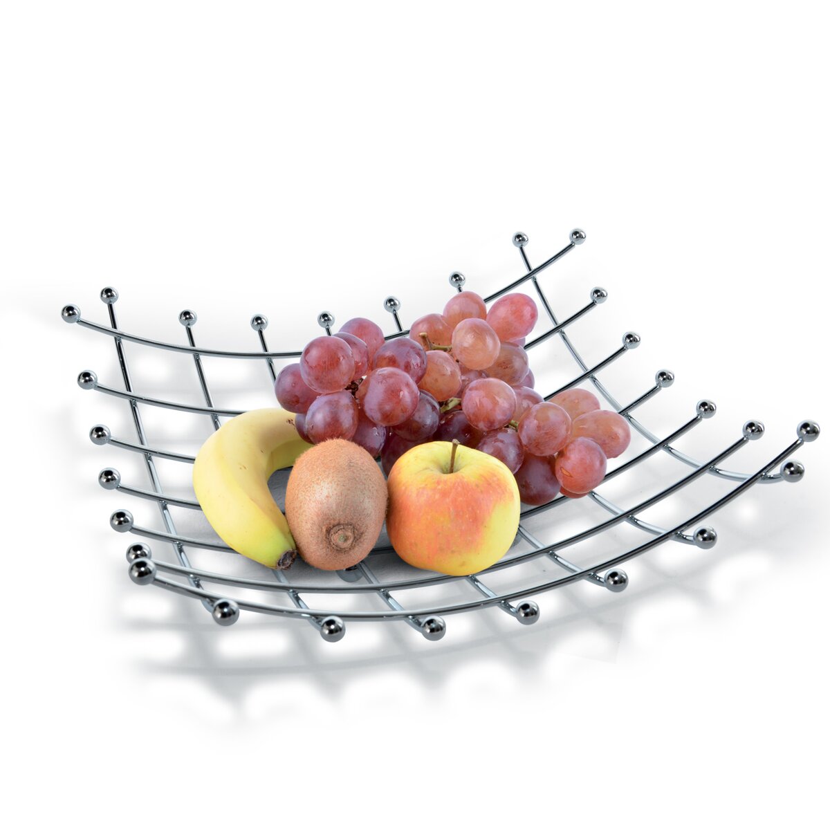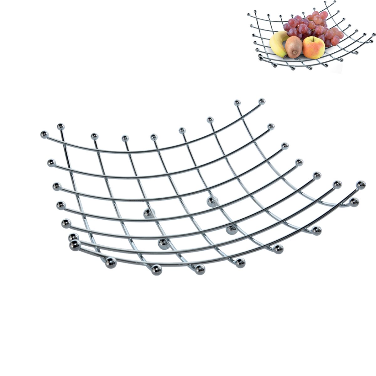 Kód produktu 540544Košík na ovocie v modernom prevedení sa hodí do každej kuchyne. Materiál: pochromovaný drôt. Rozmery: 28x28x9 cm.