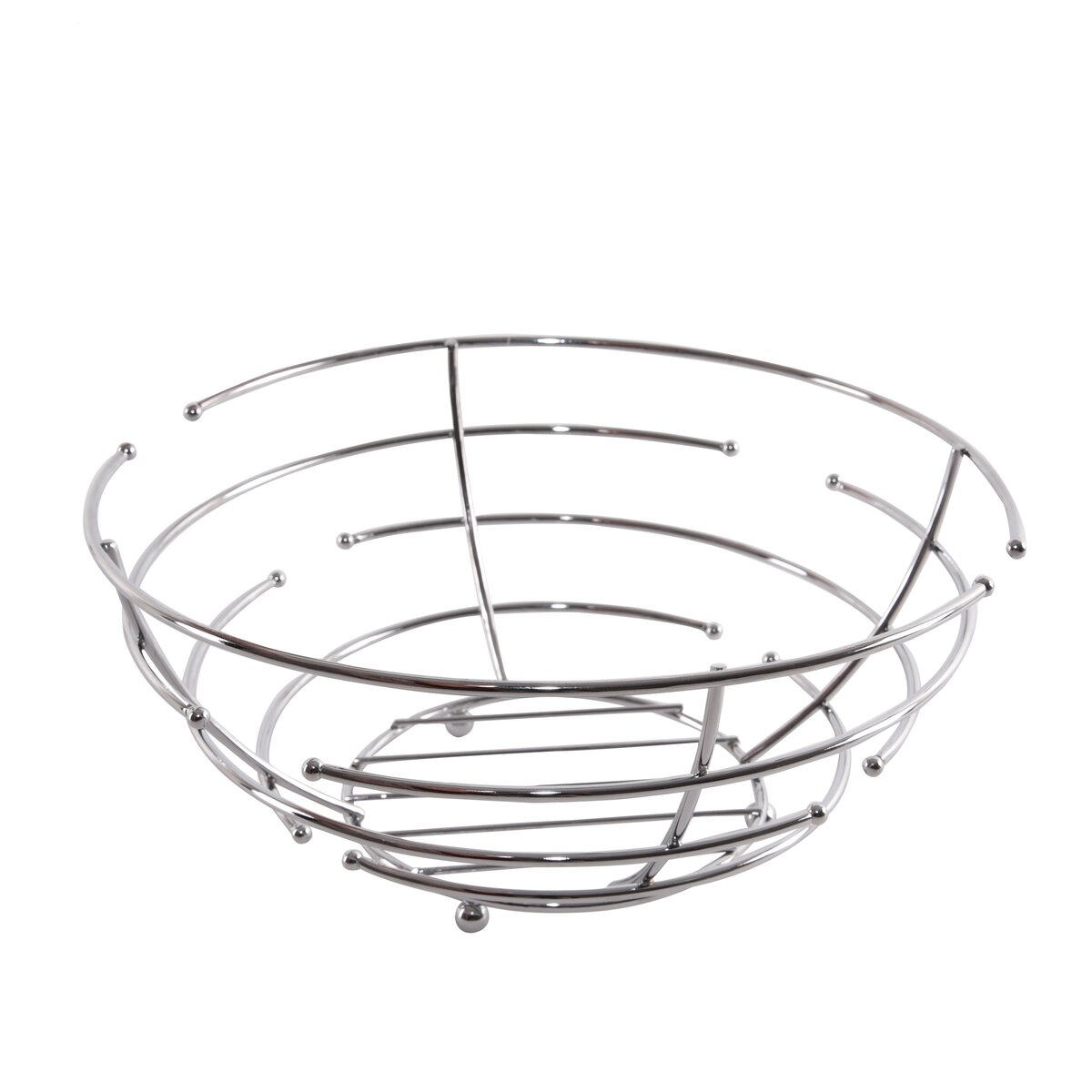 Košík na ovocie. Rad kvalitného drôteného programu - hr. drôtu 4 mm. Materiál: kov - povrchová úprava chróm. Rozmery: pr. 25,5 cm, v. 11,5 cm.