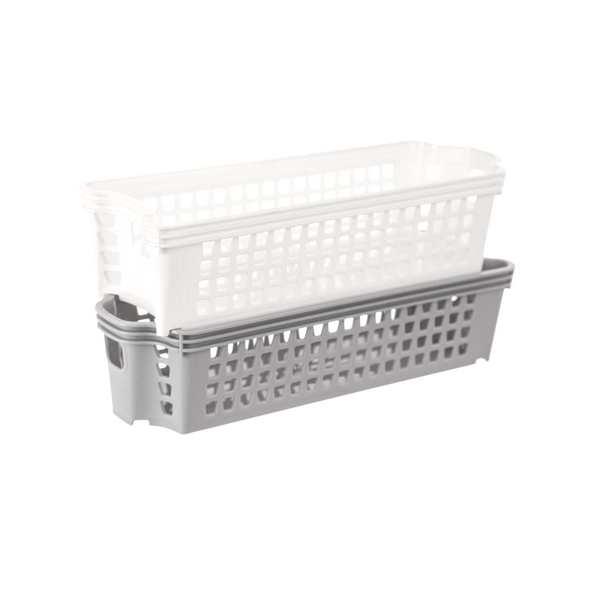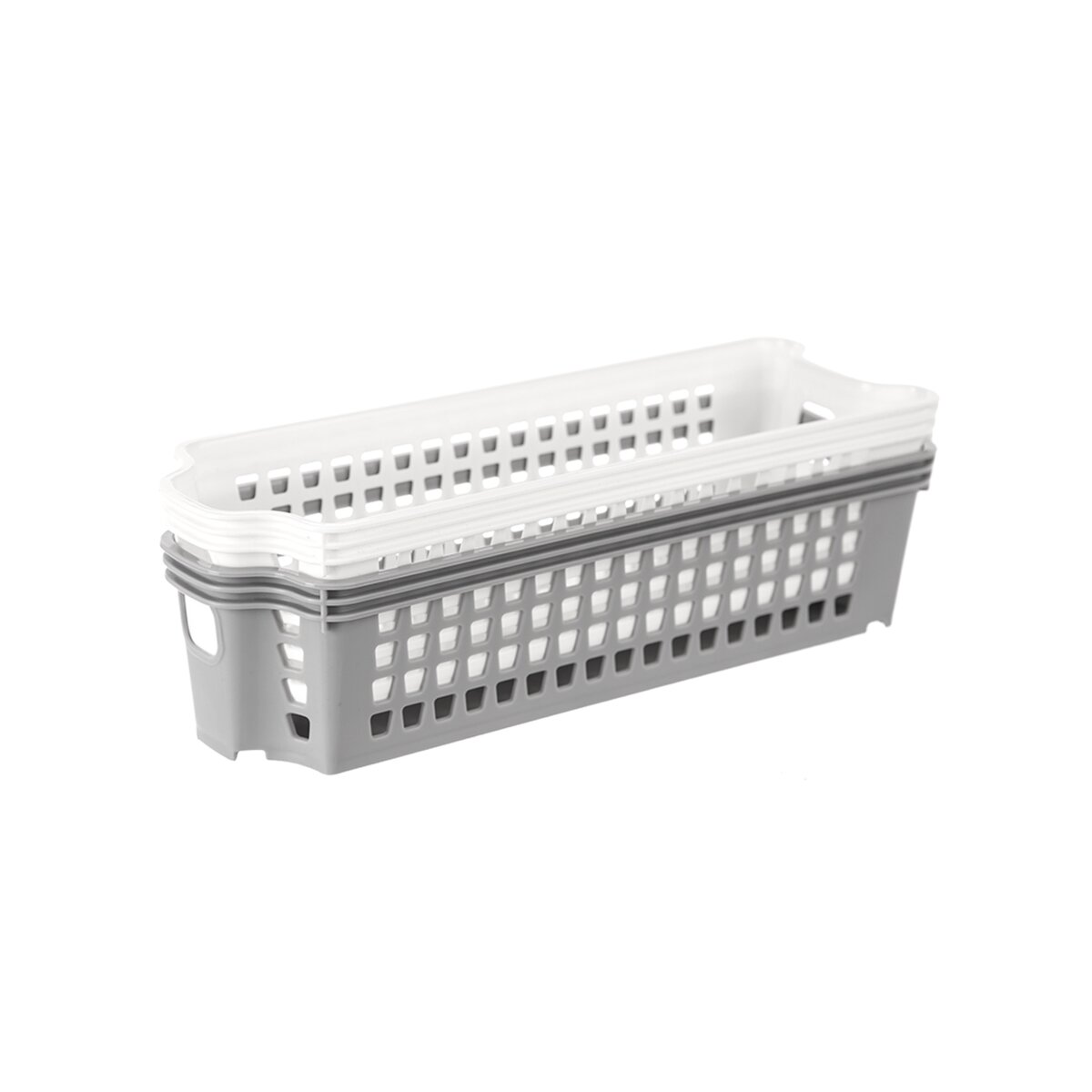 Kód produktu 731183Plastový stohovateľný košík STACK s rozmermi 28×9,5×7 cm v bielom alebo šedom prevedení. Poslúži na uloženie drobných predmetov v domácnosti.
