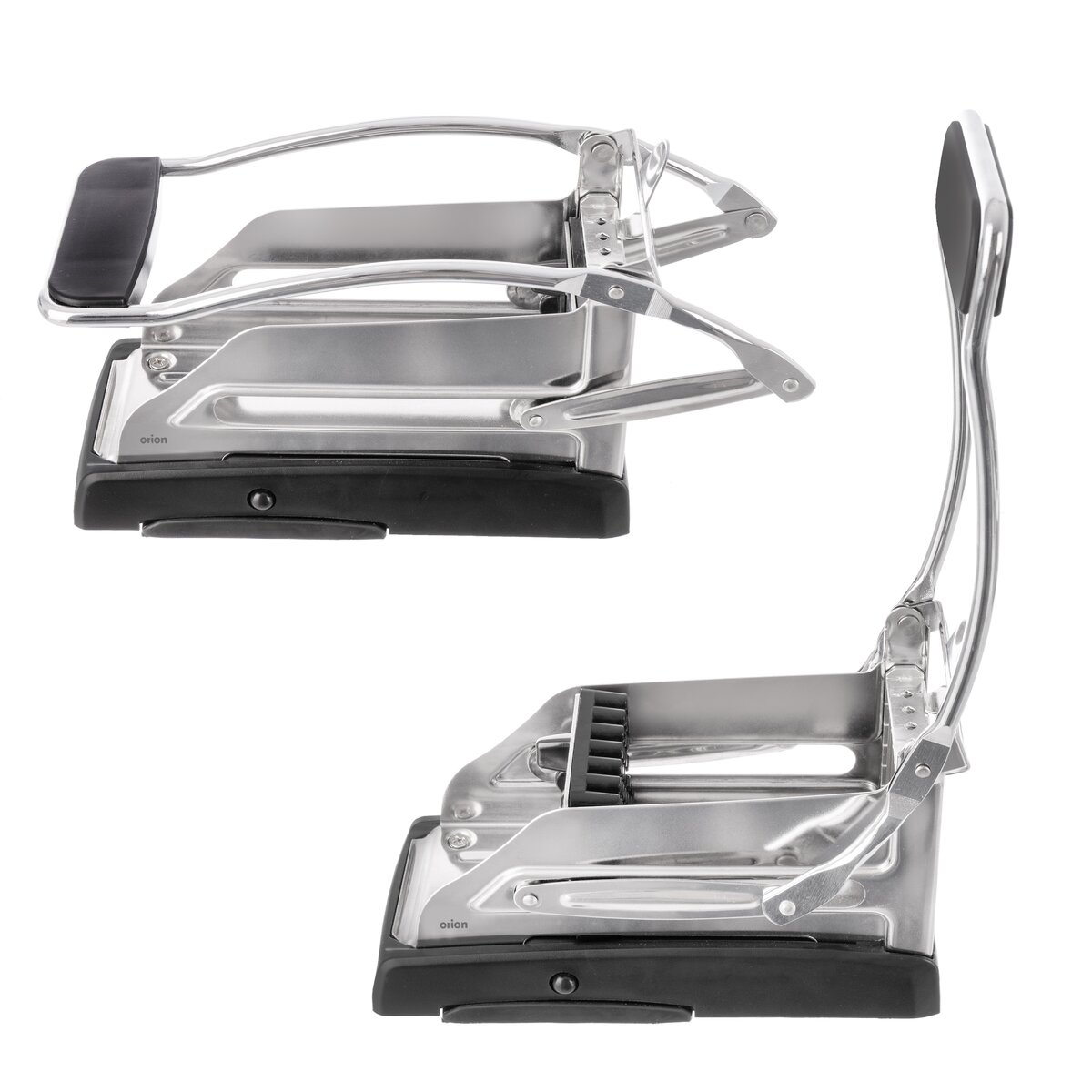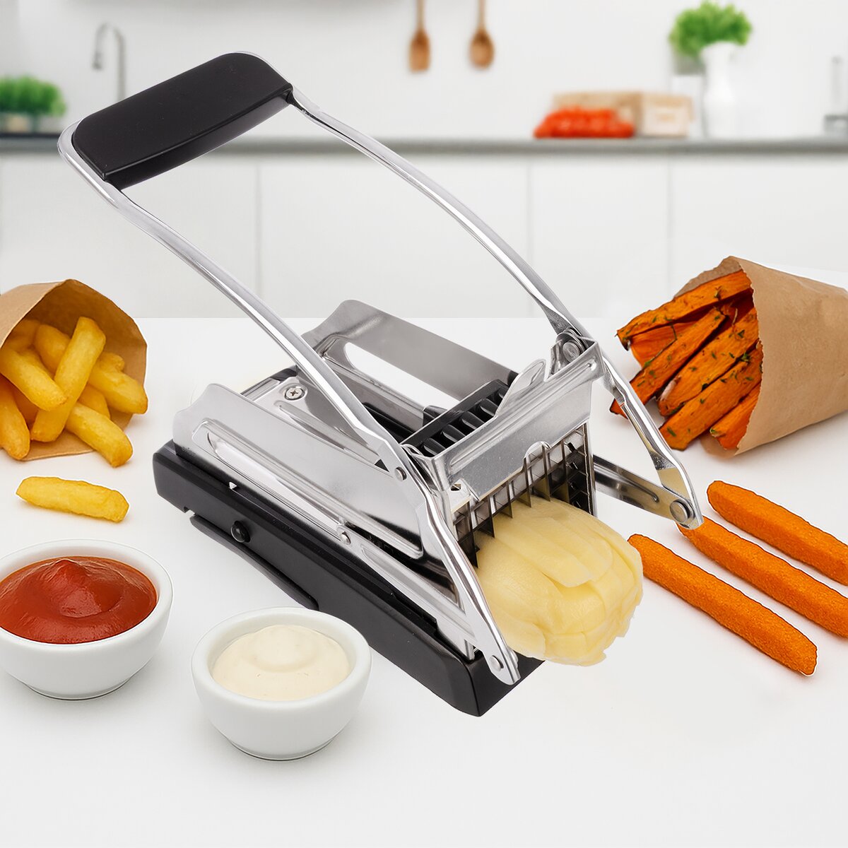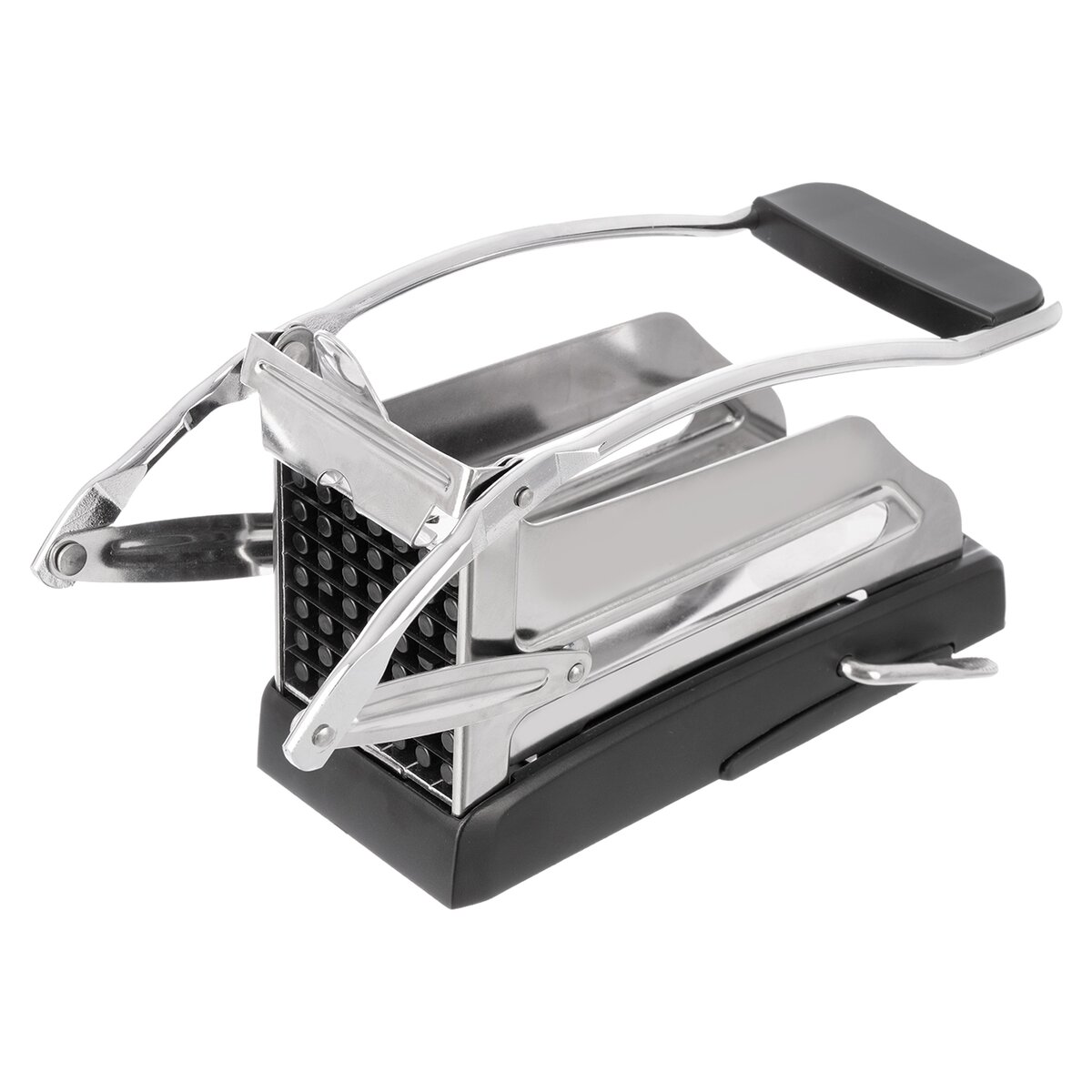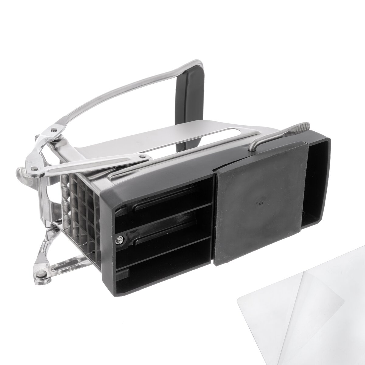 Kód produktu 144714Krájač hranoliek zo zeleniny je praktický kuchynský pomocník, ktorý vám uľahčí prípravu nielen klasických zemiakových hranolčekov na vyprážanie, ale aj hranolčekov z batátov, cukety či povarenej červenej repy, mrkvy. Skvele si poradí aj so zeleninou, ako je uhorka alebo kaleráb – ideálna voľba na prípravu zdravých zeleninových tyčiniek k obľúbeným dipom. Použitie krájača je veľmi jednoduché a rýchle. Stačí vložiť zemiaky alebo inú zvolenú zeleninu do prístroja a pomocou praktickej páky ju pretlačiť cez ostrú mriežku – behom okamihu tak získate rovnomerné hranolky bez námahy. Súčasťou balenia sú dve vymeniteľné mriežky, ktoré umožňujú voľbu medzi menšími a väčšími hranolčekmi podľa vašej chuti a potreby. Pre bezpečné a stabilné uchytenie je krájač vybavený prísavkou na spodnej strane. Pokiaľ ho potrebujete pripevniť na menej hladký povrch, môžete využiť priloženú lepiacu podložku, ktorú umiestnite pod prísavku pre zaistenie pevného držania počas používania. Balenie obsahuje návod na použitie a tiež recept, ktorý vás môže inšpirovať pri príprave chutných jedál. Upozorňujeme, že krájač nie je vhodný do umývačky riadu – odporúča sa ručné umývanie. Materiál: nerezová oceľ, Hliník (rámik mriežky), plast ABS (stojna, pretlačovadlo, poistka, časť rukoväte), TPE (prísavka), PVC (podložka). Rozmery: 25,5x10x13,5 cm, veľkosť otvorov mriežok 1,3x1,3 cm, 0,9x0,9 cm.