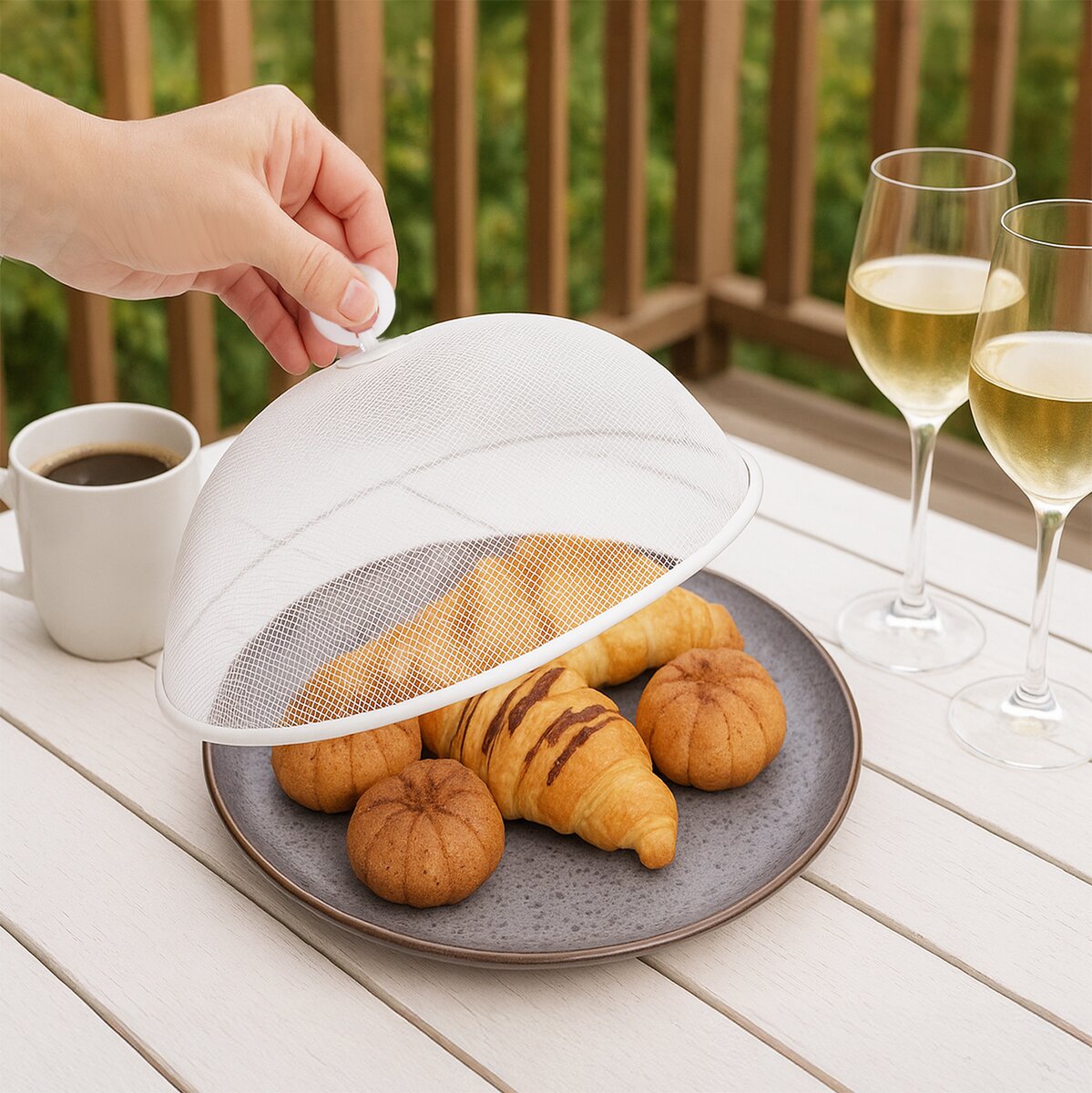 Kód produktu 152615Ochranný kryt na potraviny z kovovej sieťoviny s plastovým úchytom chráni jedlo, dezerty, múčniky, ovocie, zeleninu a ďalšie pred hmyzom. Je nevyhnutným doplnkom každého stola a je vhodný na použitie doma aj na záhrade, terase, pri záhradných párty, piknikoch alebo grilovaní. Údržba je jednoduchá – stačí kryt utrieť vlhkou handričkou, pri väčšom znečistení umyť vodou so saponátom a ihneď osušiť. Nie je vhodný do umývačky ani mikrovlnnej rúry. Mix farieb. Materiál: hliník, plast PP-úchyt. Rozmery: pr. 30 cm, v. 12,5 cm.