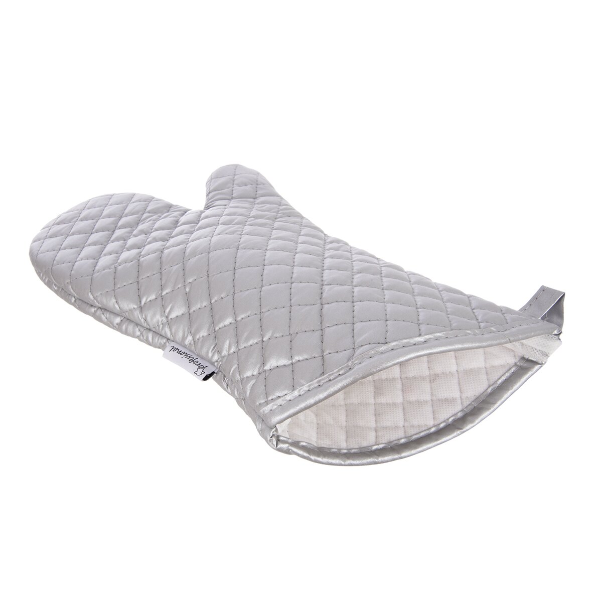 Kód produktu 153930Kuchynská chňapka je ochranná rukavica určená pre bezpečné použitie v domácnosti, najmä pri varení, pečení, manipulácii s riadom v rúre, na grile alebo na platni. Chráni ruku pred tepelnými rizikami spojenými s vybratím či pridržaním horúcich predmetov a riadu, a to vďaka odolnosti proti kontaktnému teplu do 250 °C (maximálne po dobu 15 sekúnd). Chňapka patrí do triedy ochrany 2 a nie je vhodná na kontakt s priamym plameňom. V prípade potreby ju možno očistiť iba navlhčenou hubkou alebo handričkou. Nesmie sa prať, chemicky čistiť, bieliť, žehliť ani sušiť v sušičke. Vlhkú chňapku nenechávajte schnúť priamo na tepelnom zdroji. Pre ľahké skladovanie je možné ju zavesiť za pútko. Materiál: vrchný materiál bavlna, nástrek polyetylakrylát, výplň: bavlna, polyester, viskóza, podšívka: 100% polyester. Rozmery: 30,5x18 cm.