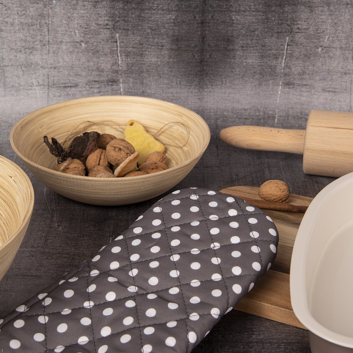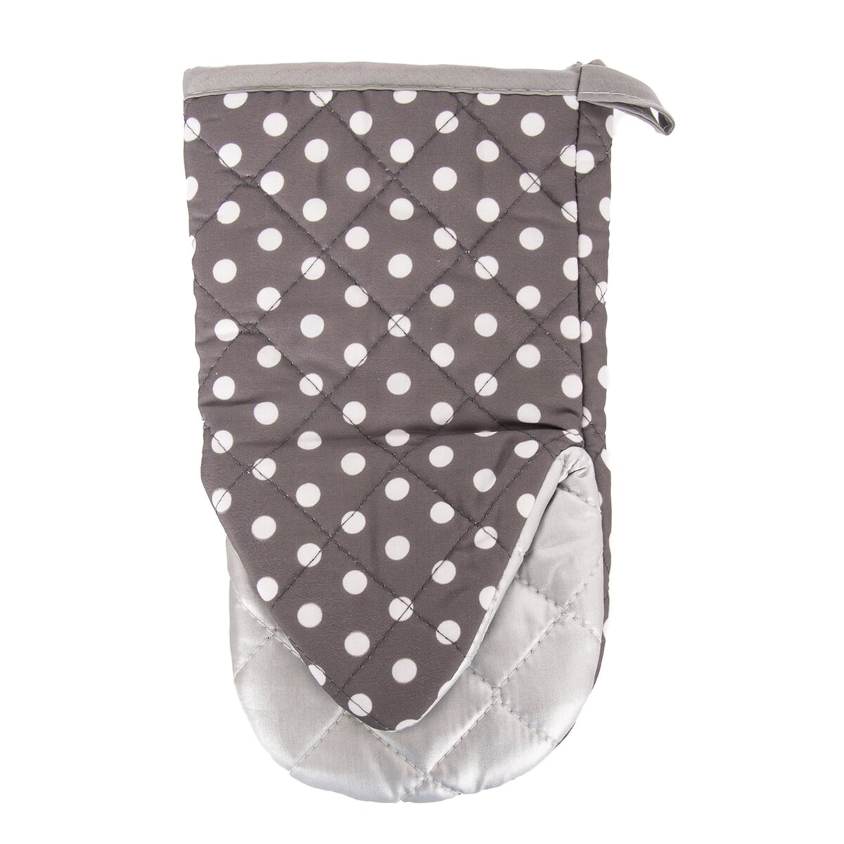Kód produktu 153917Kuchynská palcová textilná ochranná chňapka s magnetom, s teflónovou vrstvou a s pútkom na zavesenie. Ochráni Vaše ruky pri varení a pečení pred popálením. Uľahčí manipuláciu s horúcim riadom. Určené pre domácnosti. Možnosť zavesenia alebo pripevnenia na magnet. Materiál: 100% polyester (vrchná časť), 100% bavlna/celulóza (dlaňová časť striebornej farby), 100% polypropylén (podšívka), netkaná textília. Rozmery: d. 25,5 cm, š. 14 cm. Trieda ochrany 2, max. kontaktná teplota do 250 °C počas max. 15 sekúnd, nevystavovať priamemu plameňu či sálavému teplu. Neprať, nečistiť chemicky, nebieliť, nežehliť, nesušiť v sušičke na bielizeň, nesušiť priamo na tepelnom zdroji, v prípade potreby utrieť navlhčenou hubkou či handričkou. Návod na použitie súčasťou balenia.