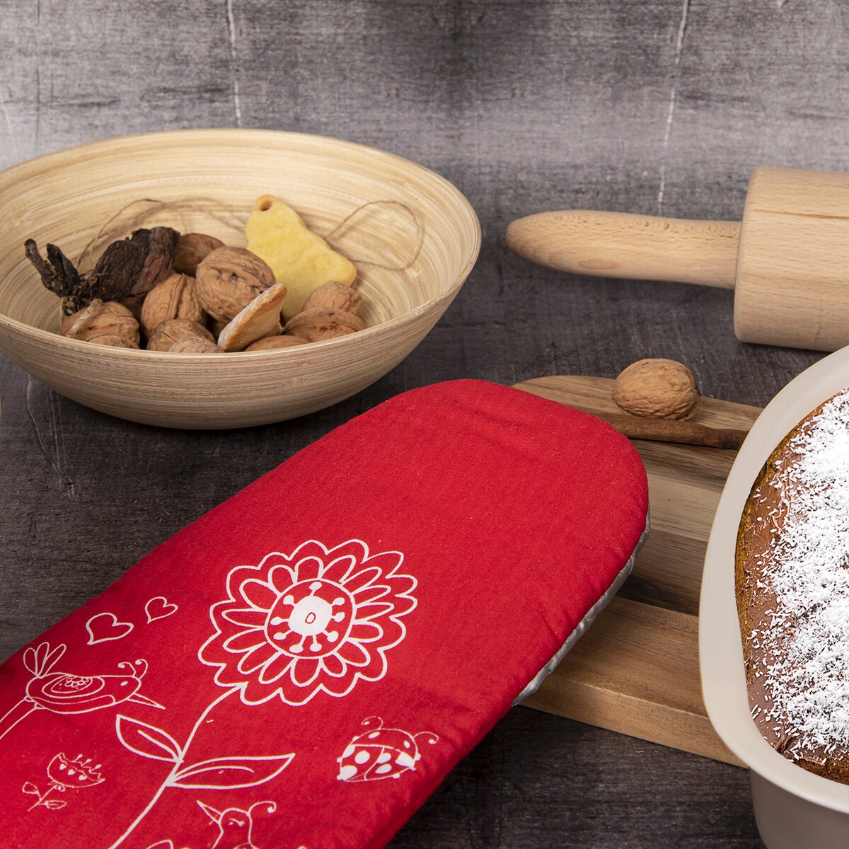 Kód produktu 153918Kuchynská palcová textilná ochranná chňapka s magnetom, s teflónovou vrstvou a s pútkom na zavesenie. Ochráni Vaše ruky pri varení a pečení pred popálením. Uľahčí manipuláciu s horúcim riadom. Určené pre domácnosti. Možnosť zavesenia alebo pripevnenia na magnet. Materiál: 100% polyester (vrchná časť), 100% bavlna/celulóza (dlaňová časť striebornej farby), 100% polypropylén (podšívka), netkaná textília. Rozmery: d. 25,5 cm, š. 14 cm. Trieda ochrany 2, max. kontaktná teplota do 250 °C počas max. 15 sekúnd, nevystavovať priamemu plameňu či sálavému teplu. Neprať, nečistiť chemicky, nebieliť, nežehliť, nesušiť v sušičke na bielizeň, nesušiť priamo na tepelnom zdroji, v prípade potreby utrieť navlhčenou hubkou či handričkou. Návod na použitie súčasťou balenia.