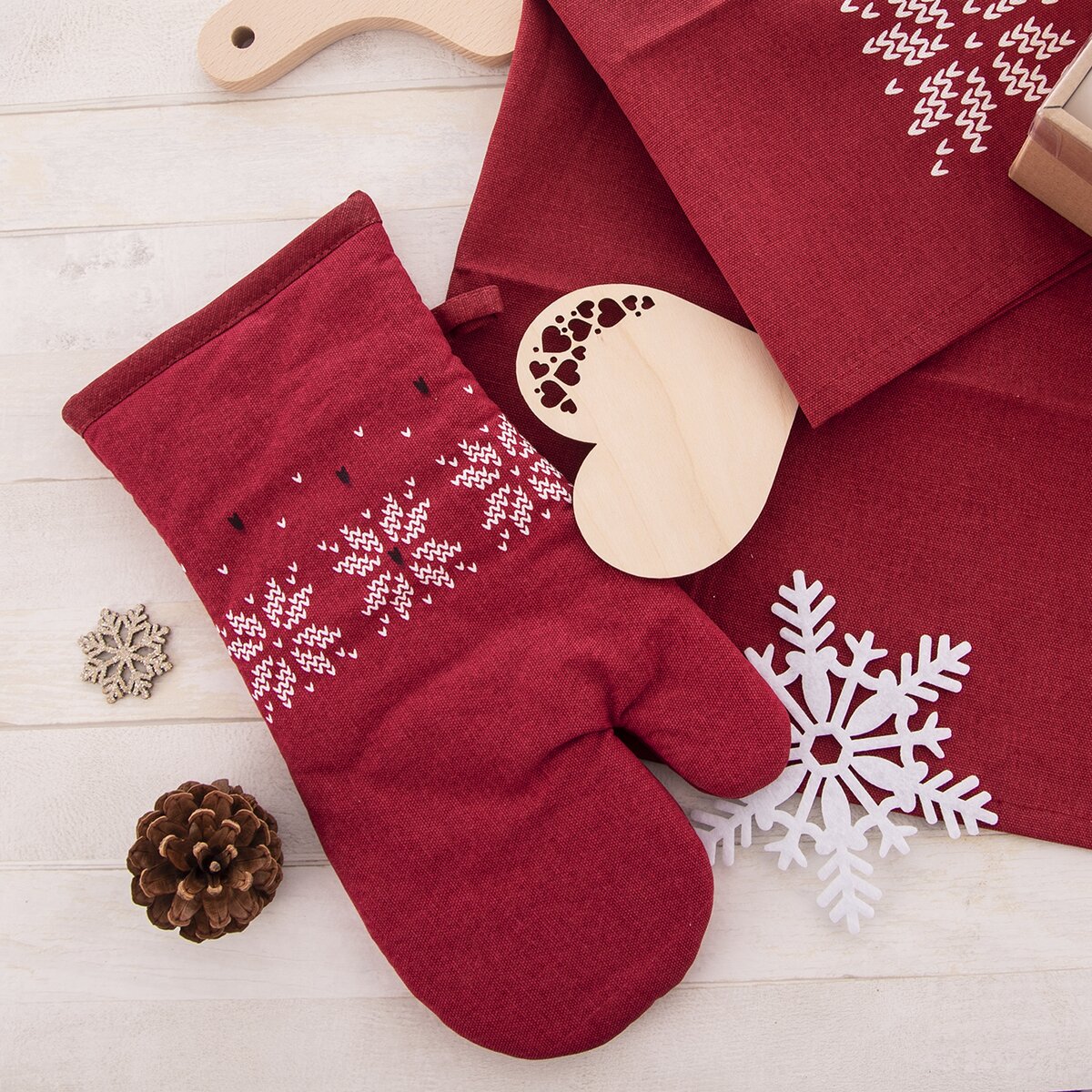 Aj kuchynská chňapka môže byť štýlová. To potvrdzuje táto bavlnená červená rukavica inšpirovaná severskými vzormi .