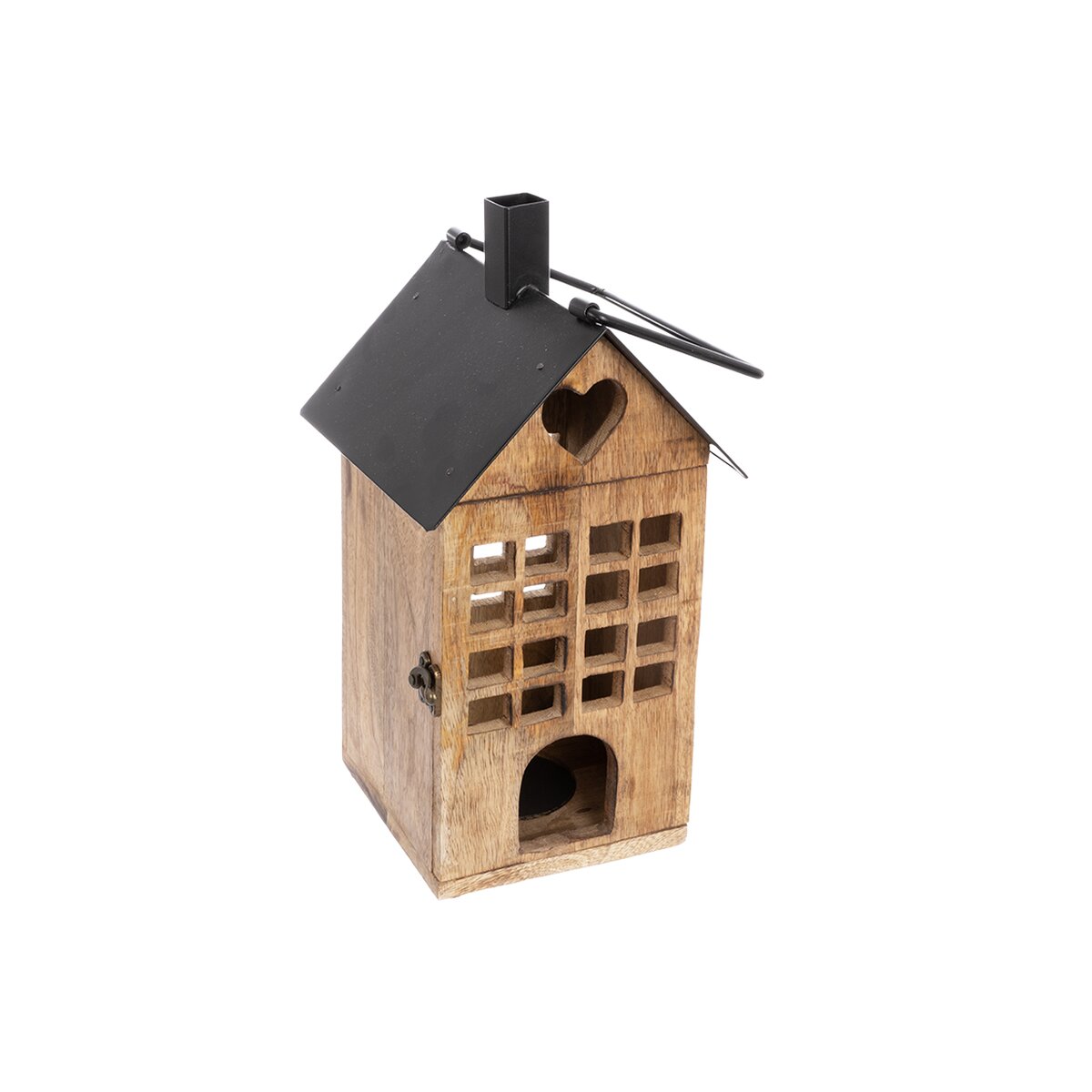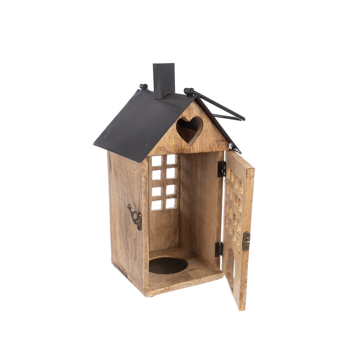 Kód produktu X13074Drevený lampáš z kvalitného mangového dreva vnesie do vášho domova hrejivú a útulnú atmosféru. Jeho originálny dizajn v tvare domčeka s jemne vyrezávanými okienkami vytvára po zapálení sviečky nádhernú hru svetla a tieňov. Kovová strieška dodáva lampášu rustikálny nádych, zatiaľ čo srdiečkový výrez na prednej strane prináša romantický detail, ktorý okamžite upúta pozornosť. Pevná drevená konštrukcia a praktické dvierka zaisťujú ľahké umiestnenie LED sviečky, takže si môžete kedykoľvek vytvoriť príjemné a bezpečné svetelné zákutia. Materiál: mangové drevo, kov. Rozmery: 18x18x36 cm.