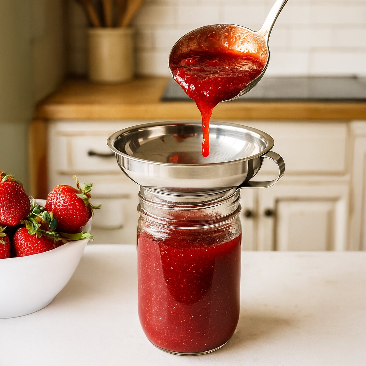 Kód produktu 120462Nerezový lievik z kolekcie KITCH s praktickým uchom a širokým hrdlom slúži na jednoduché a rýchle plnenie zaváracích pohárov, fliaš alebo konzerv s otvorom s priemerom aspoň 4 cm. Vďaka kvalitnému materiálu je odolný, ľahko sa čistí a je ideálnym pomocníkom pri zaváraní aj každodennom prelievaní tekutín či sypkých surovín. Je vhodný do umývačky riadu. Materiál: nerezová oceľ. Rozmery: pr. 12,8 cm, vn. pr. 3,8 cm, v. 5,7 cm, š. s uchom 15 cm.