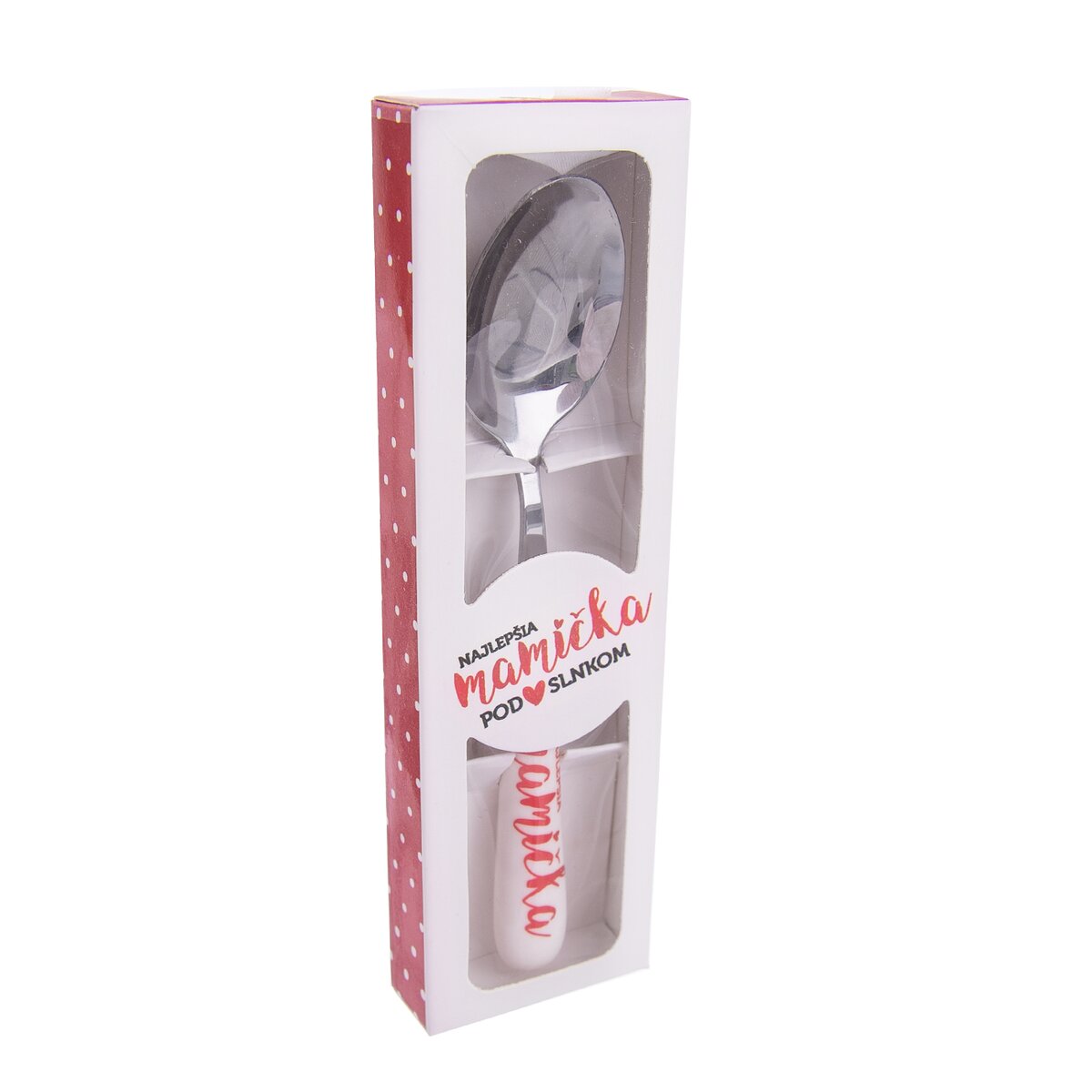 Kód produktu 143678Kovová lyžička s keramickým držadlom, s celkovou dĺžkou 15 cm, s nápisom Najlepšia mamička, ktorá slúži ako darček aj funkčná lyžička.