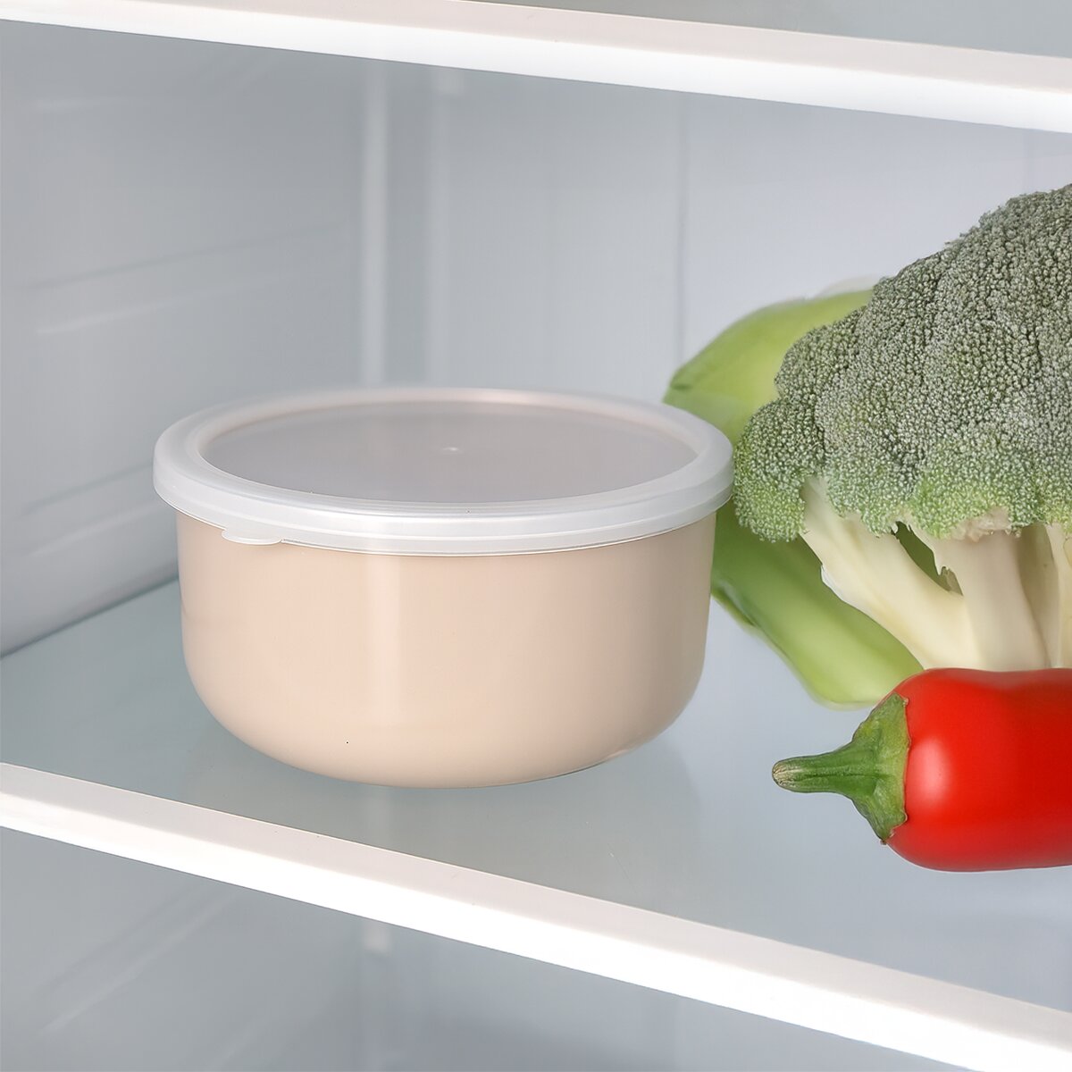 Kód produktu 129289Smaltovaná miska s nerezovým lemom a viečkom ponúka univerzálne použitie - skvele poslúži na skladovanie potravín v chladničke, pri servírovaní na stole, nakladaniu aj ďalšiemu uloženiu. Možno ju využiť aj na krátkodobý ohrev či prihriatie jedla priamo na sporáku alebo indukcii. Pri ohreve je však nutné dodržať postupné zahrievanie a ohrievať vždy bez plastového viečka. Nie je vhodná do mikrovlnnej rúry. Možno používať v rúre bez viečka a umývať v umývačke riadu. Materiál: smaltovaný plech, nerezová oceľ (lem), plast LDPE (viečko). Rozmery: objem 1,4 l, pr. 16,5 cm, v. 8 cm.